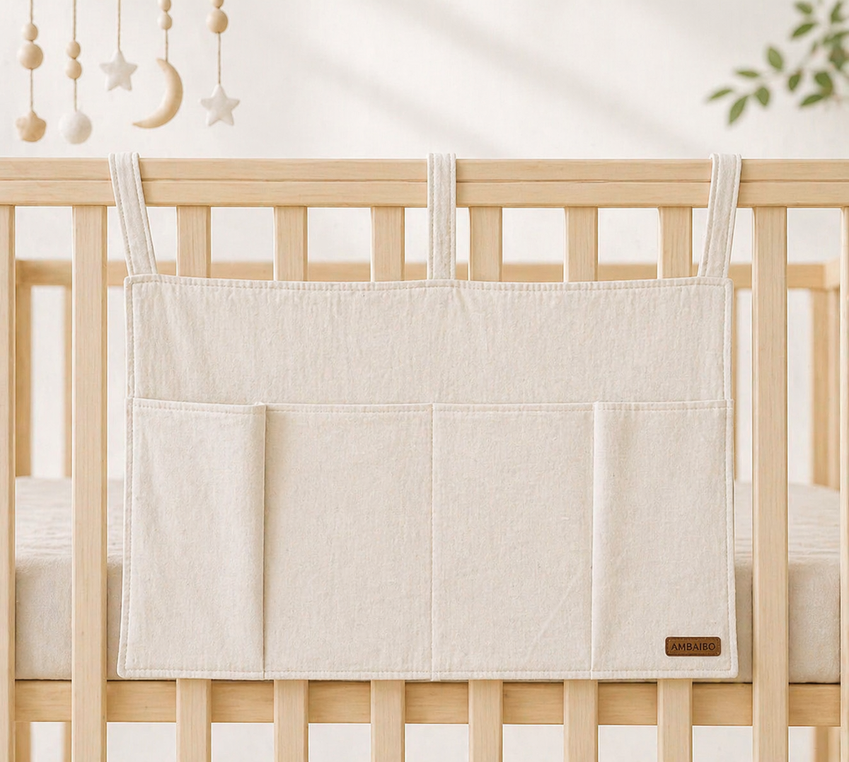 Nuestro bolsillero de cuna está confeccionado en tusor 100% algodón, ideal para mantener ordenadas las pertenencias de tu bebé. Con 2 bolsillos, ofrece un espacio práctico y funcional sin ocupar mucho espacio.