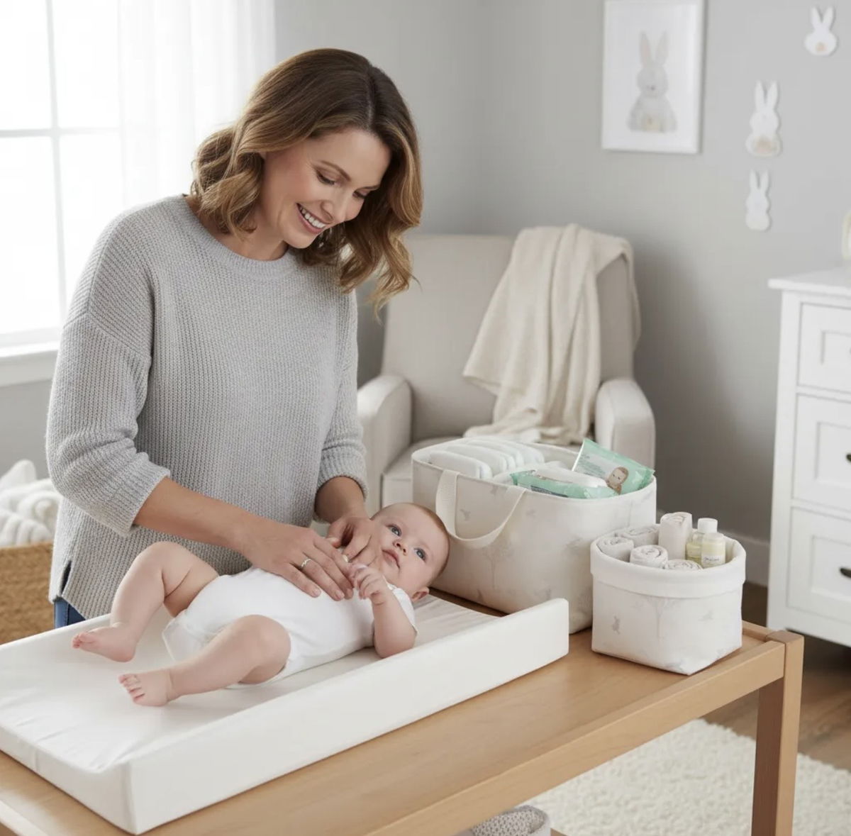 Ideal para guardar pañales, toallitas, cremas y accesorios.