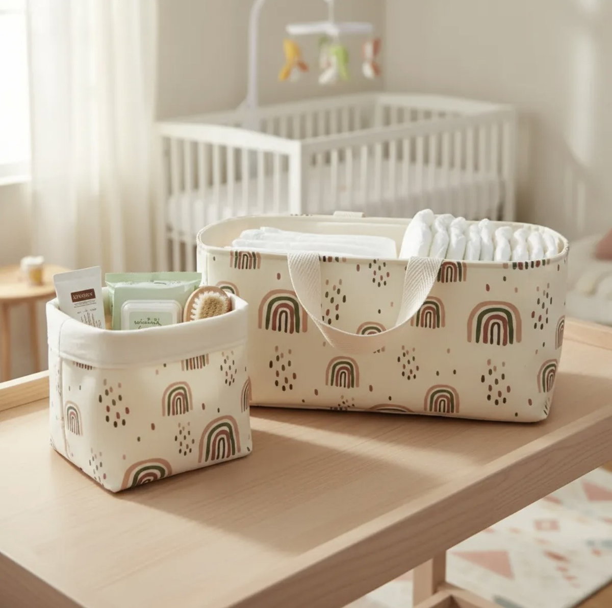 • Cesto de tela: Ideal para almacenar cremas, toallitas húmedas, talco y otros accesorios esenciales.