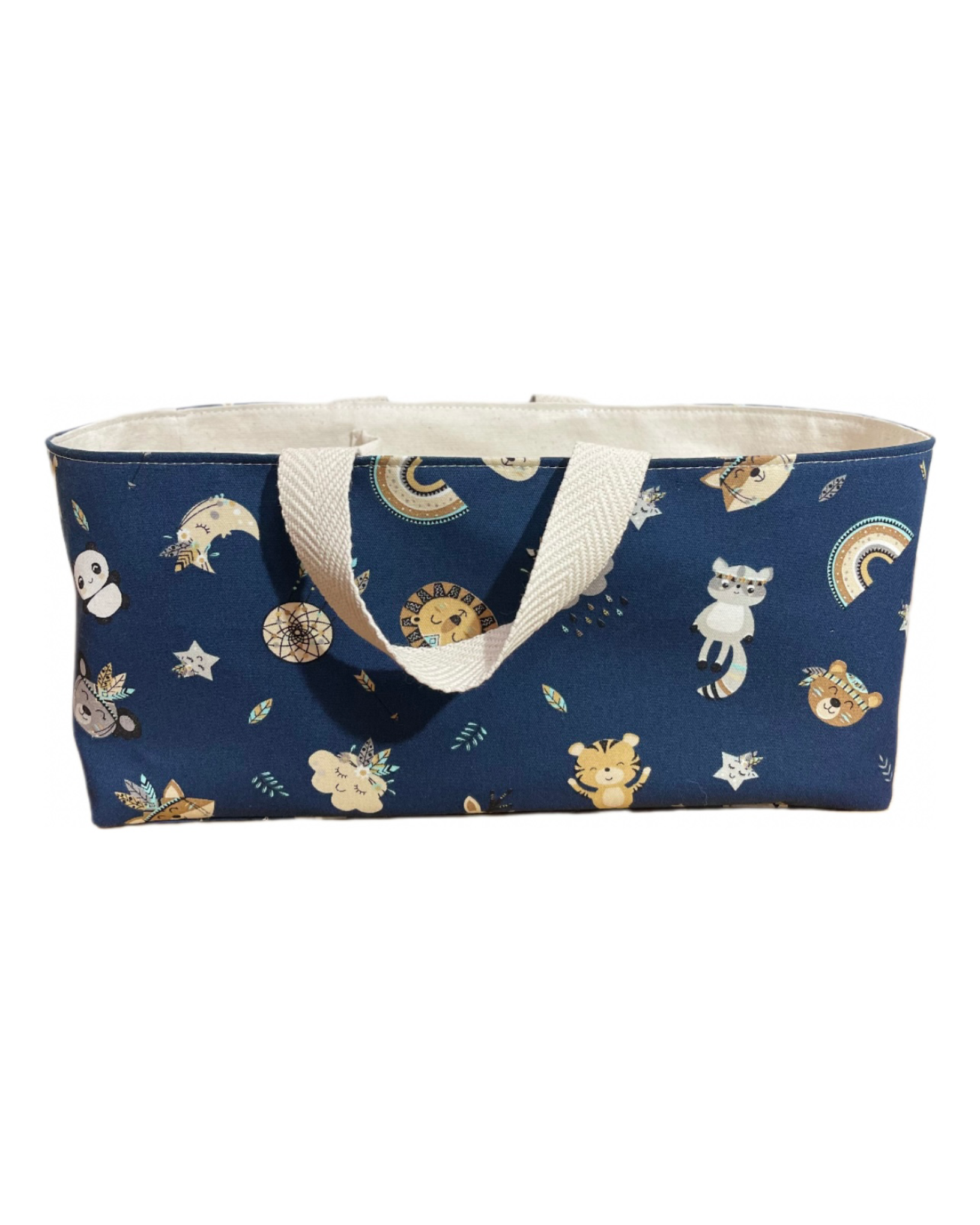 Confeccionado en tela estampada de algodón en el exterior e interior en natural de algodón, con estructura firme que mantiene su forma.
