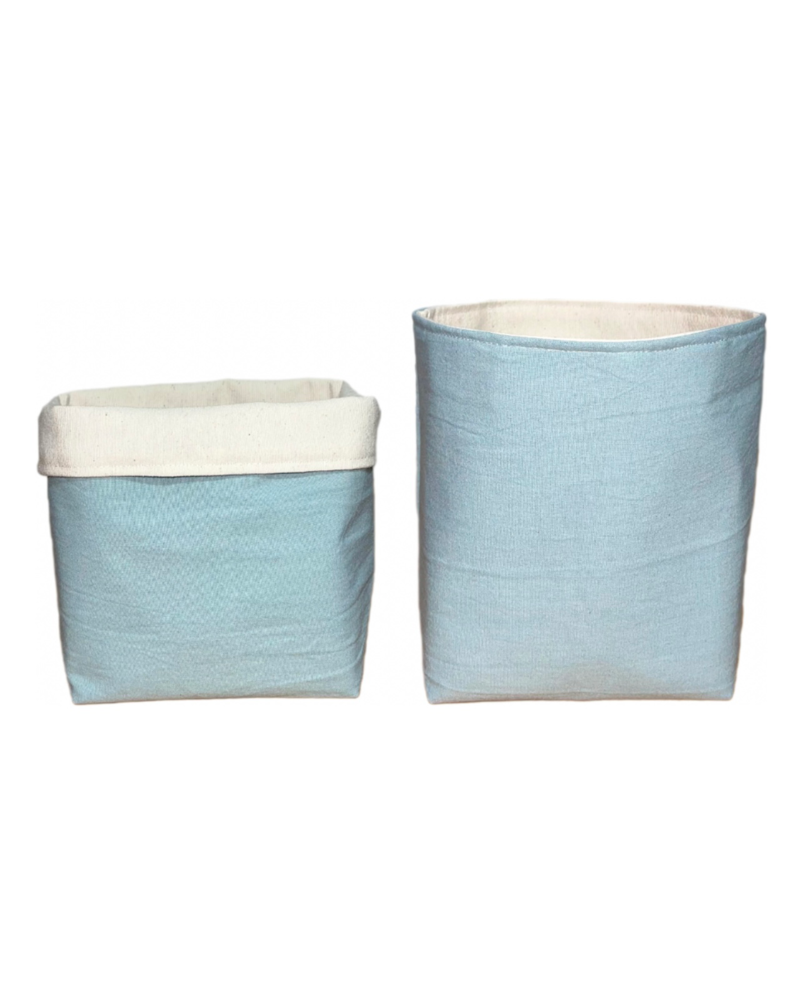 Este set de 2 cestos organizadores está confeccionado en tela 100% algodón tusor. Son reversibles: podés darles la vuelta y cambiar el estilo según tu gusto o ambiente.