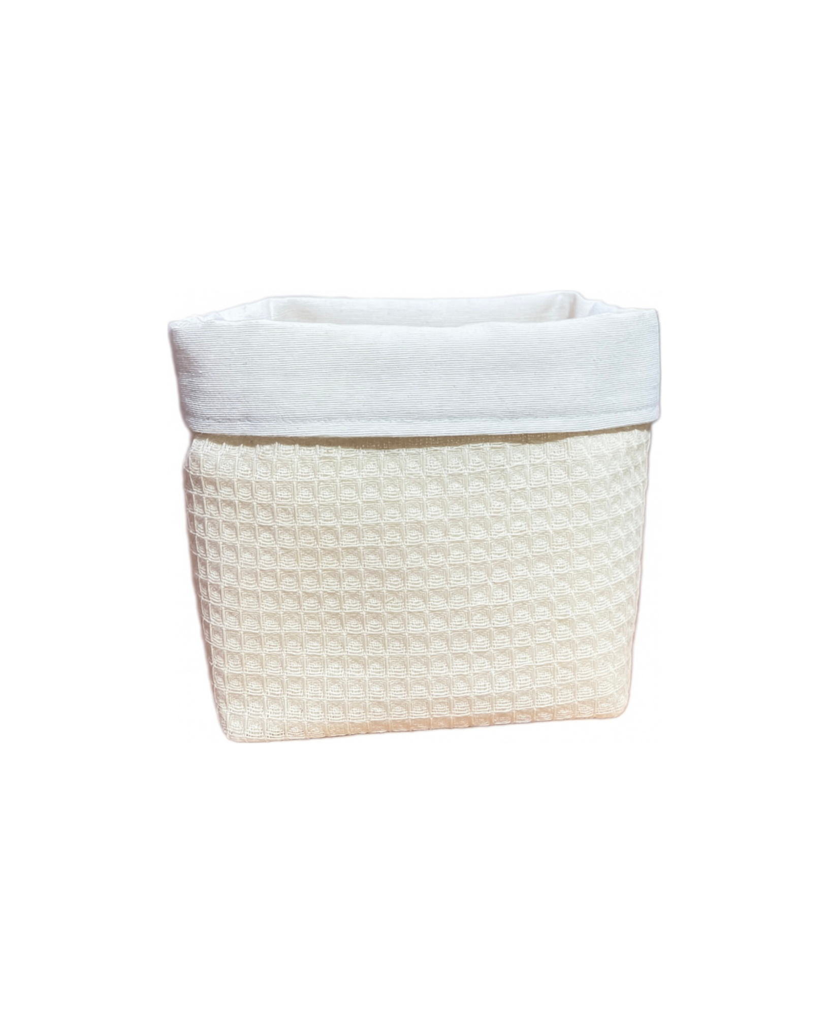 Este cesto organizador está confeccionado en tela 100% algodón con textura tipo waffle o tusor suave y resistente. Son reversibles: podés darles la vuelta y cambiar el estilo según tu gusto o ambiente.