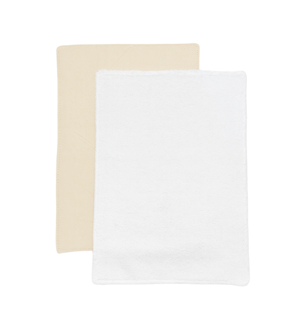 Su textura suave, absorbente y delicada cuida la piel del bebé, manteniendo su carita limpia y seca durante la alimentación o dentición.