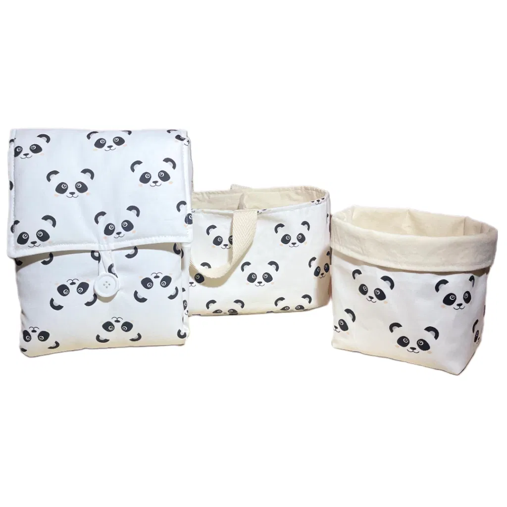 - Cesto de tela: Versátil y funcional, ideal para guardar toallitas, cremas o pequeños objetos.