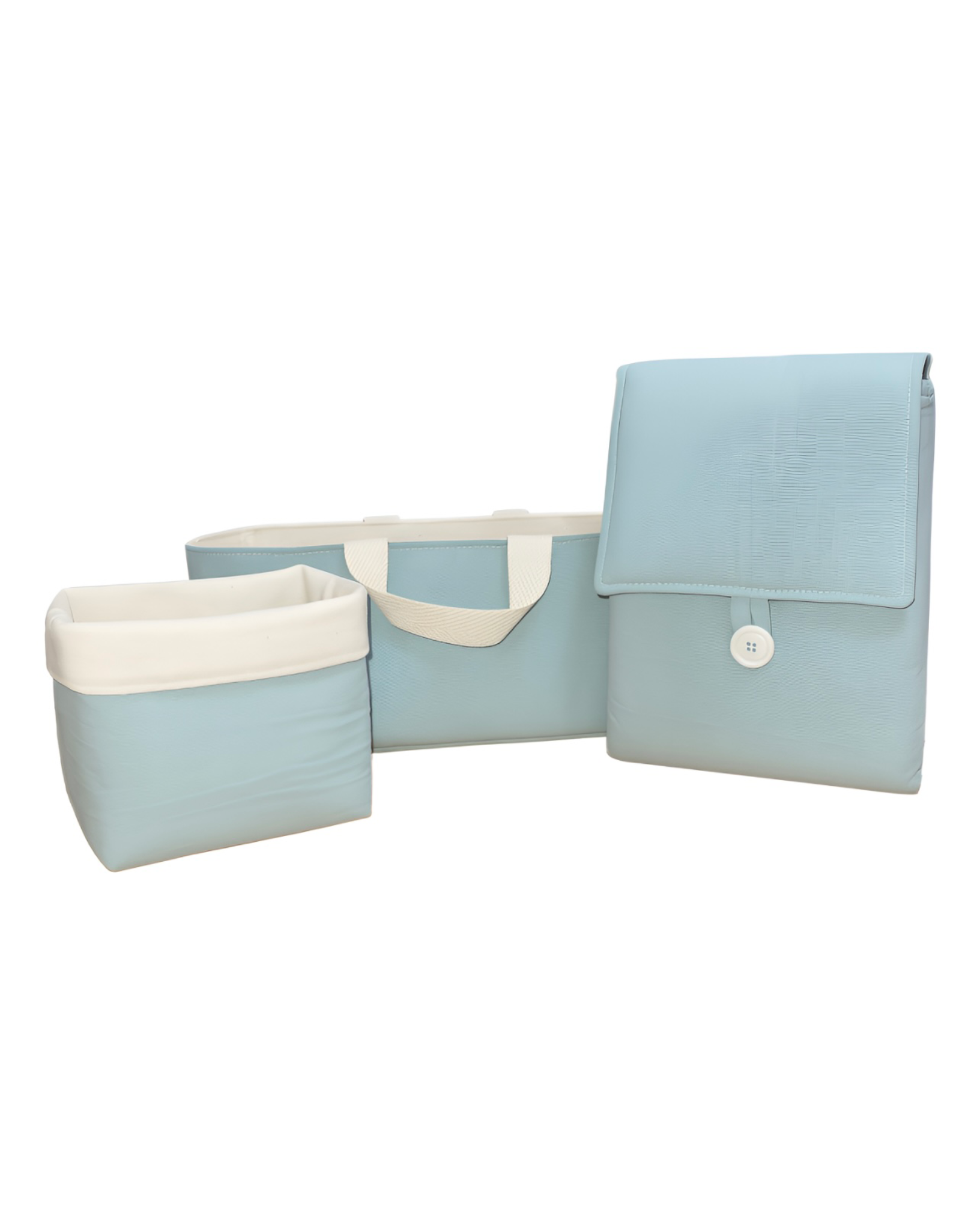 El regalo ideal para un recién nacido. Este set incluye tres productos esenciales para la organización y comodidad del bebé: