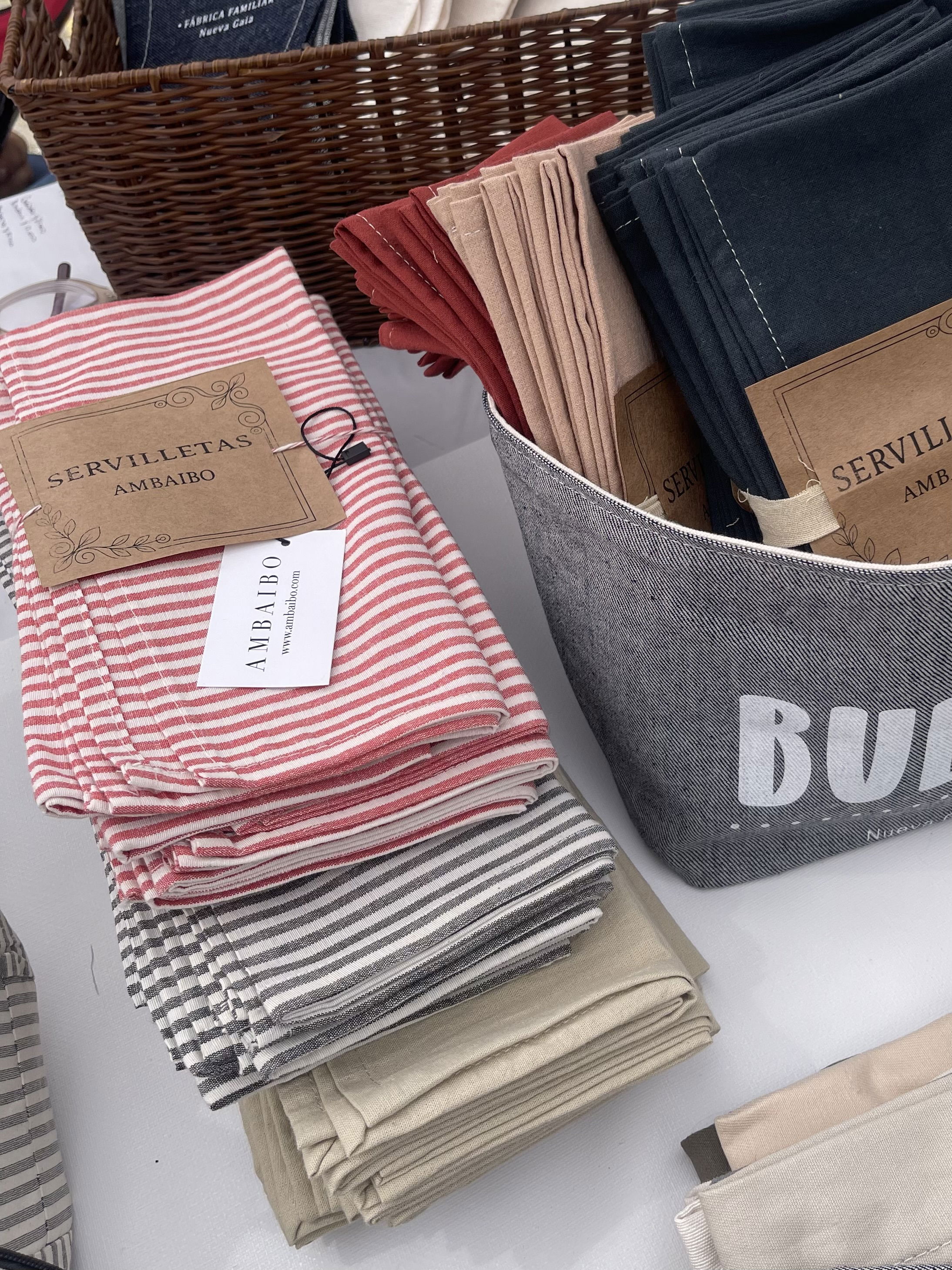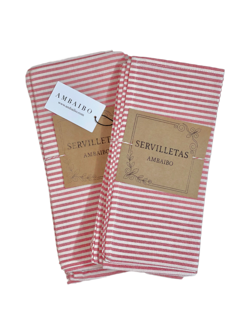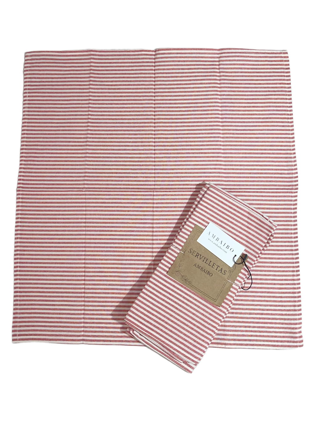Pack x4 servilletas confeccionadas en tusor liviano de algodón, una tela suave, natural y de aspecto artesanal que aporta calidez a la mesa.