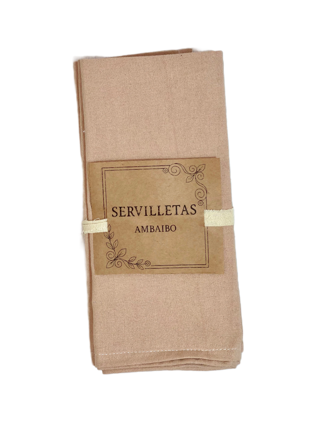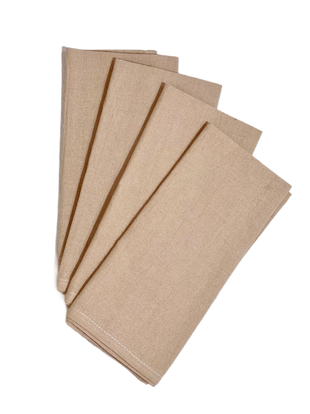 Pack x4 servilletas confeccionadas en tusor liviano de algodón, una tela suave, natural y de aspecto artesanal que aporta calidez a la mesa.