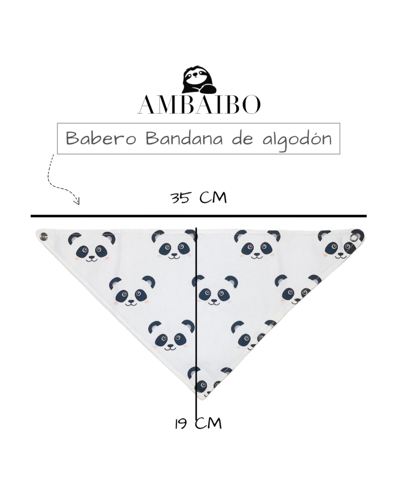 Babero bandana suave y cómodo, ideal para complementar el outfit del bebé. Cuenta con broche metálico para un ajuste práctico y seguro. Medidas aproximadas: 35 cm de ancho (de broche a broche) y 19 cm de alto.