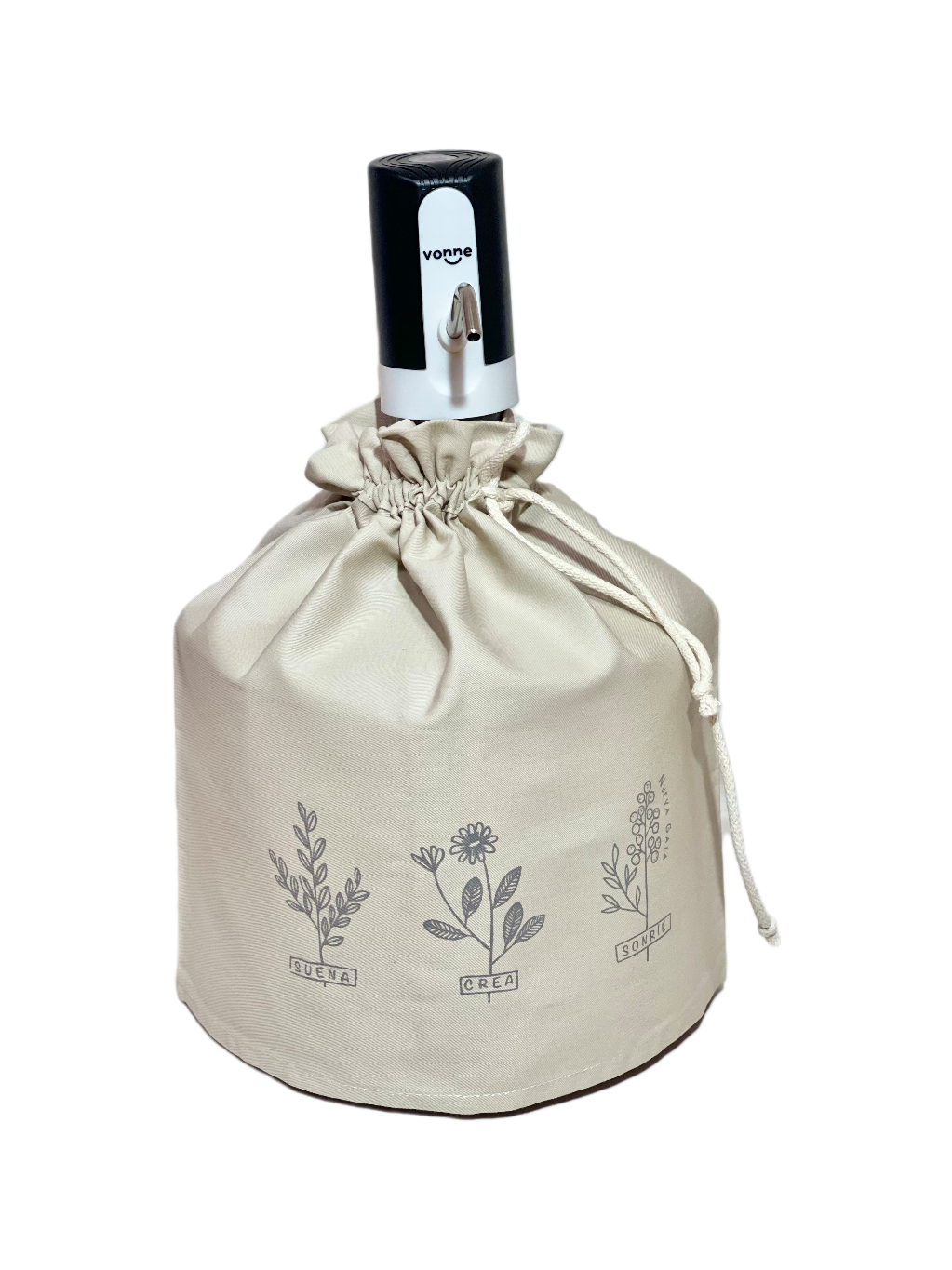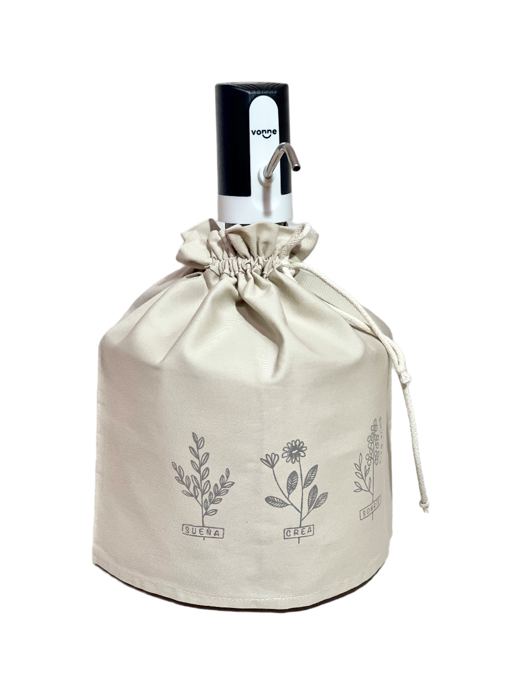 Diseñada para bidones de 12 litros, esta funda combina funcionalidad y diseño para mantener tu dispenser siempre prolijo y decorativo. Confeccionada en tela color arena con estampa botánica en tono gris, invita a llenar los espacios de calma y armonía.