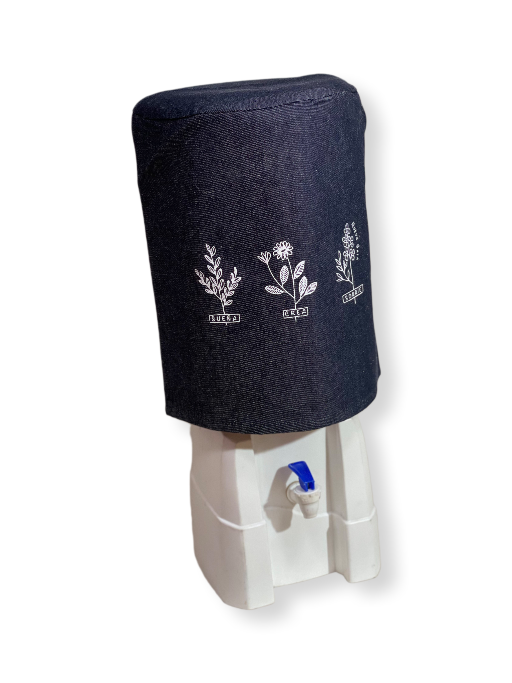 Diseñada para bidones de 20 litros, esta funda aporta calidez y estilo a los espacios del hogar. Confeccionada en jean, mantiene el bidón cubierto de forma prolija y decorativa, sumando un detalle simple y encantador a tu cocina o comedor.
