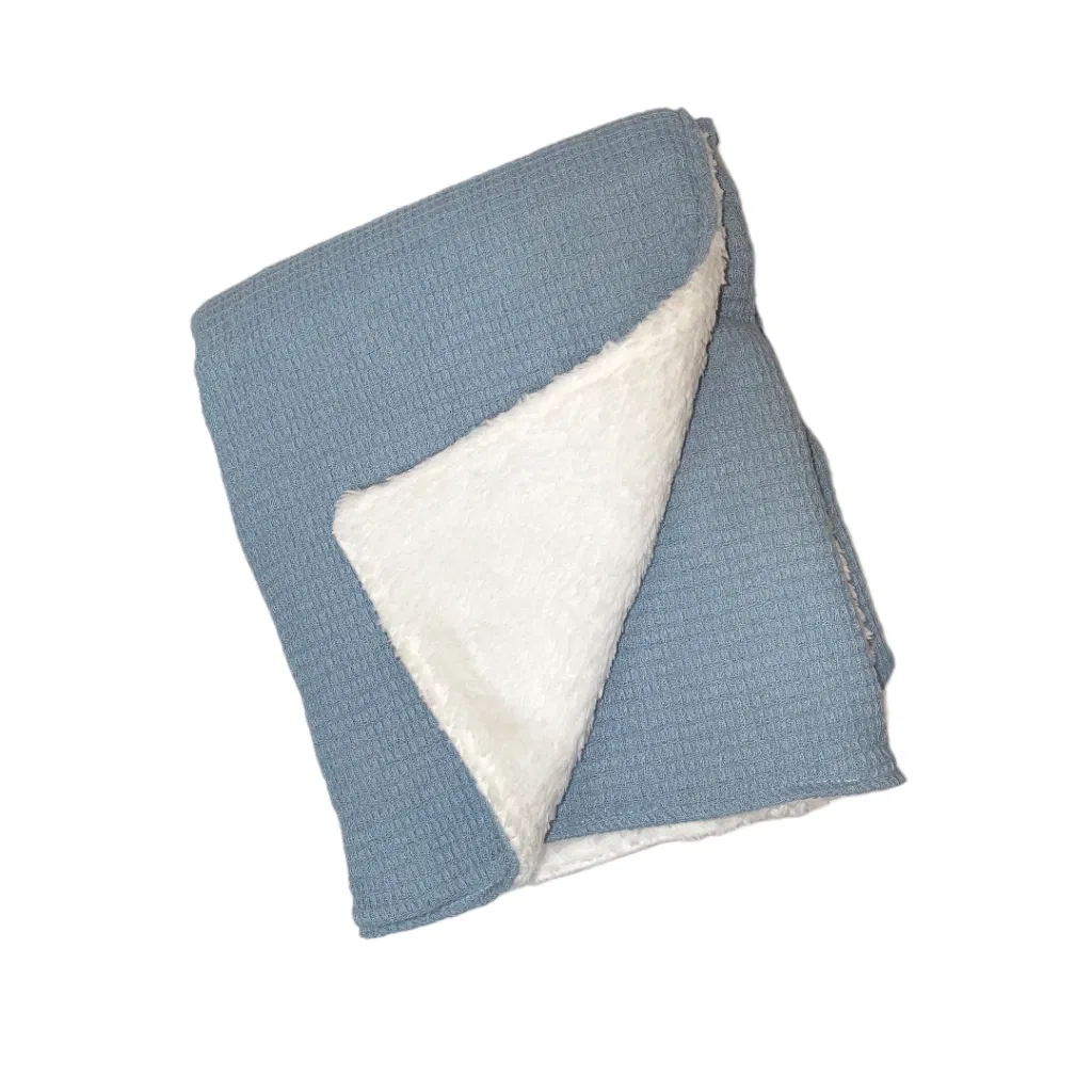 Nuestra manta de 80x100 cm combina la suavidad del corderito con la textura del tejido waffle, también conocido como nido de abeja. Hecha de 100% algodón, esta manta es ideal para mantener al bebé abrigado y cómodo. Perfecta para usar en la cuna o el cochecito, ofrece una calidez acogedora y una textura agradable al tacto, siendo un complemento versátil y esencial para el cuidado diario del bebé.