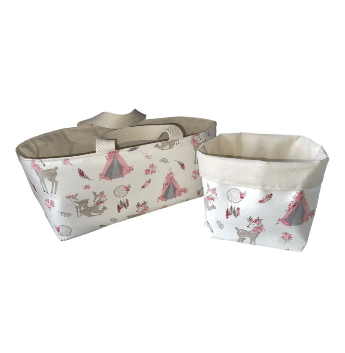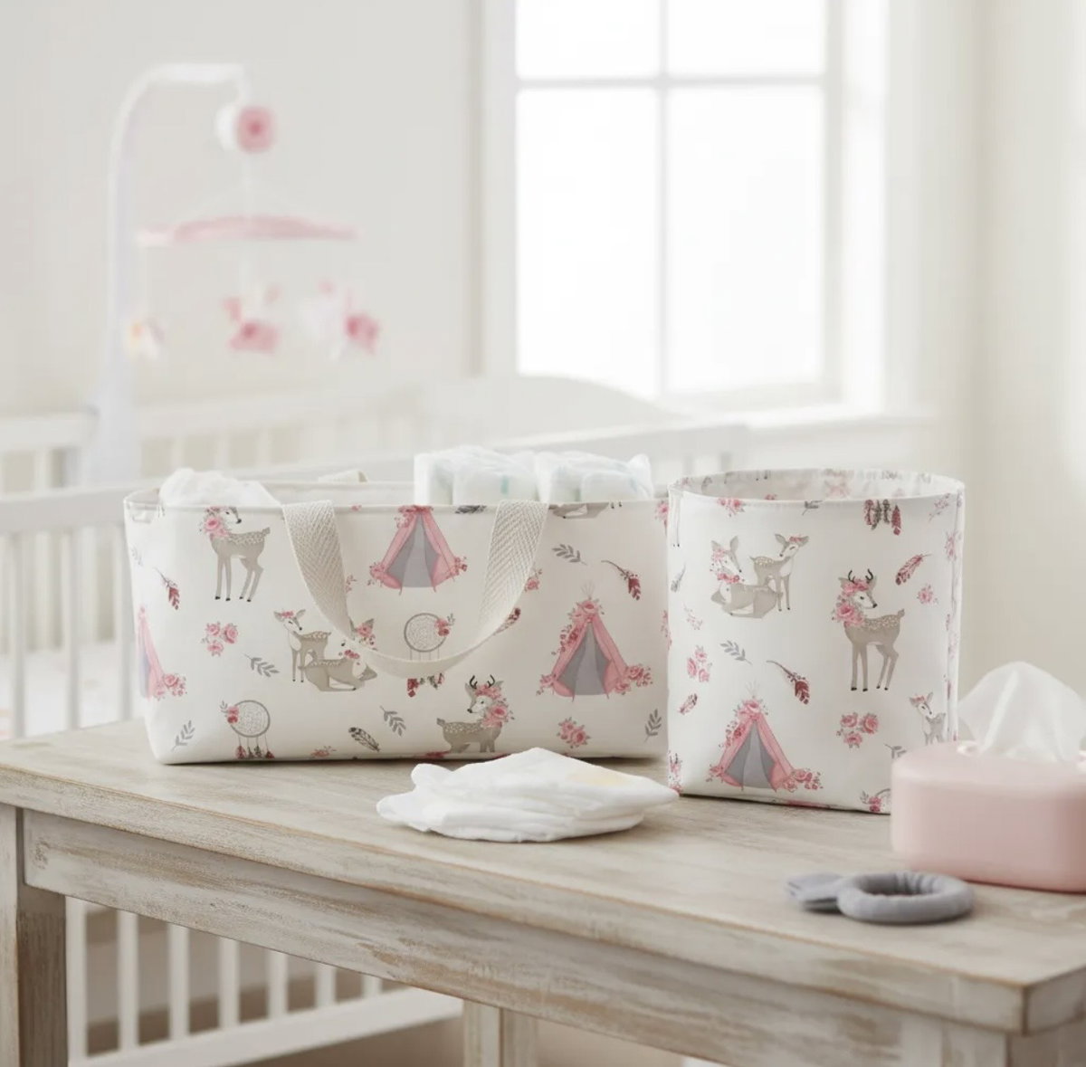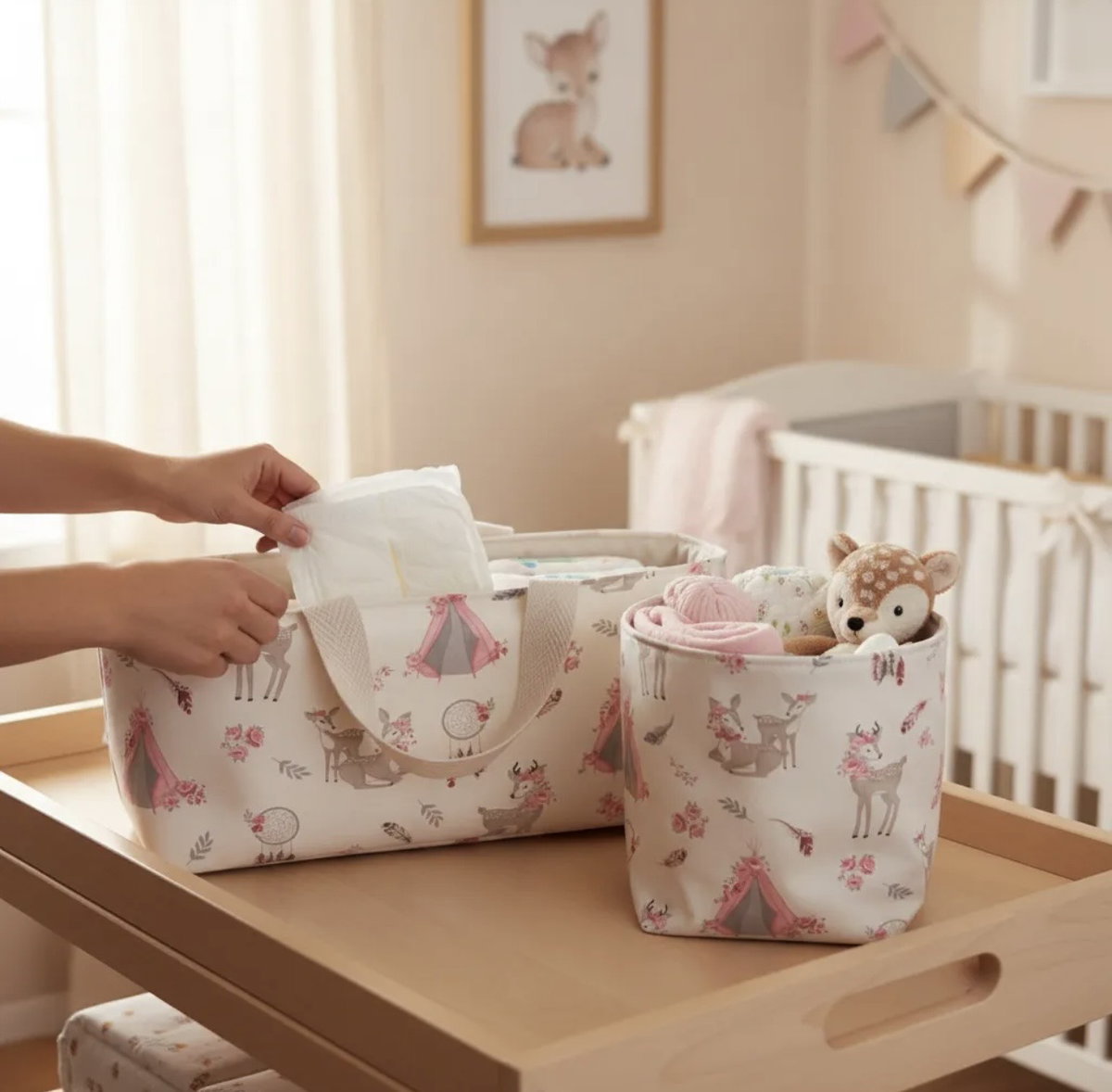 • Cesto de tela: Ideal para almacenar cremas, toallitas húmedas, talco y otros accesorios esenciales.