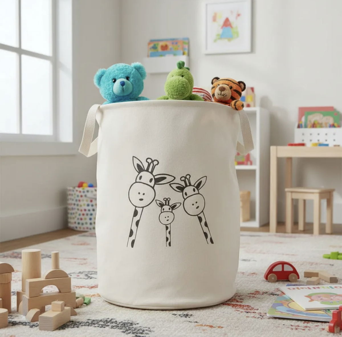 Cesto contenedor confeccionado en lona de algodón resistente, ideal para mantener cada espacio en orden con estilo.