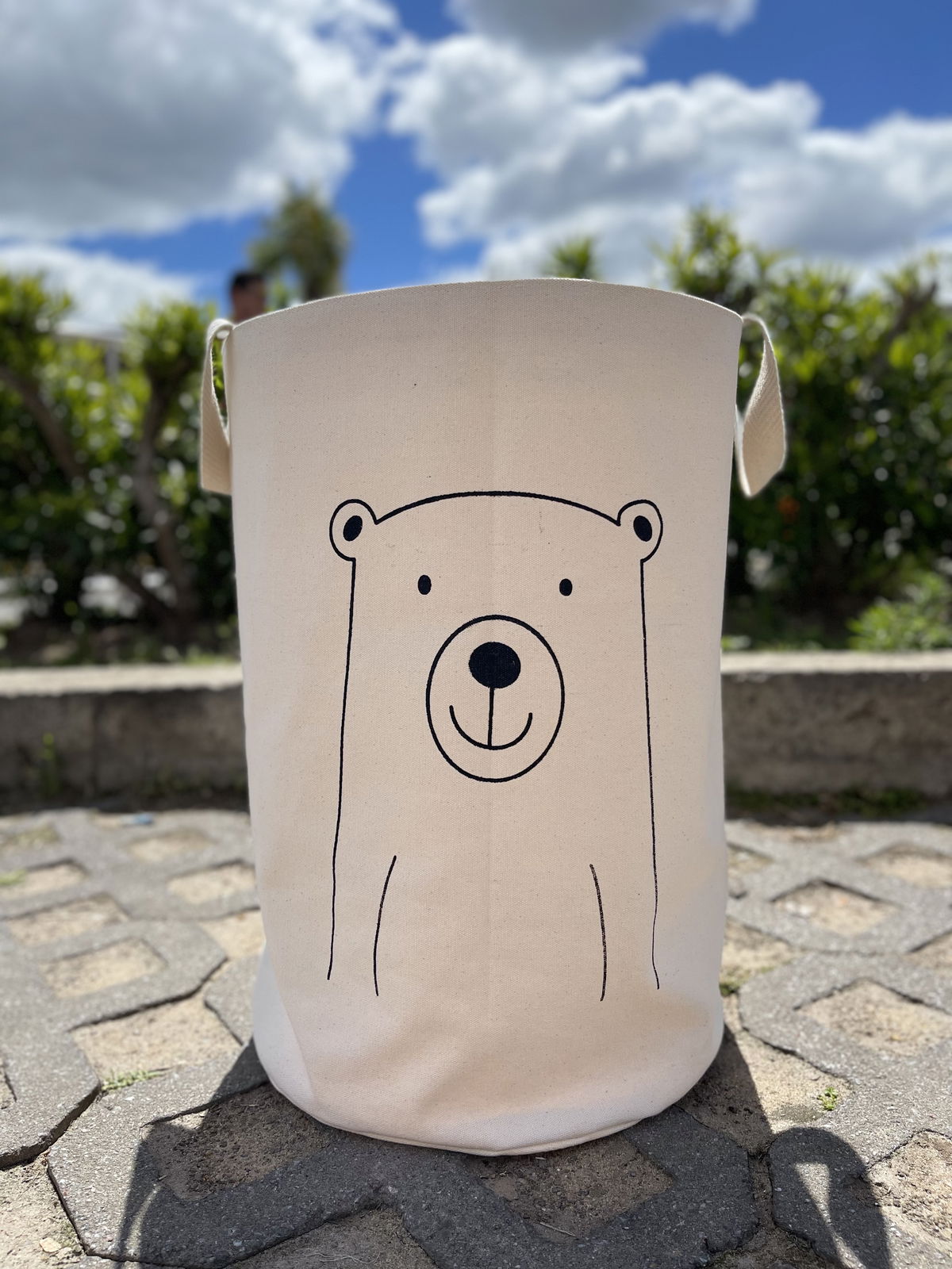 Cesto contenedor confeccionado en lona de algodón resistente, ideal para mantener cada espacio en orden con estilo.