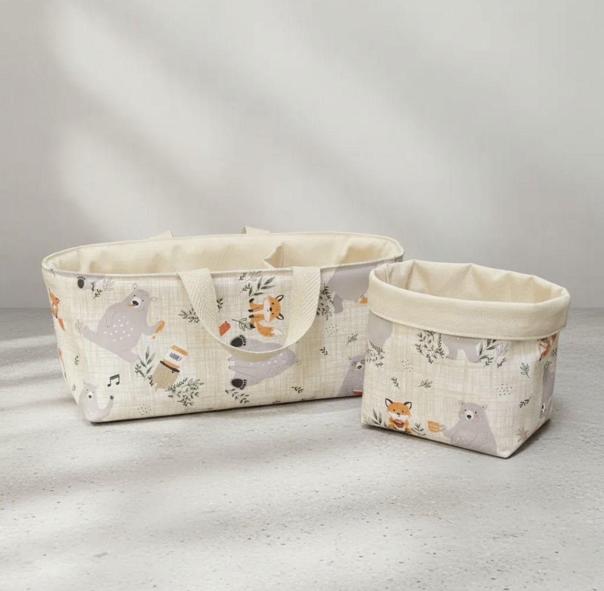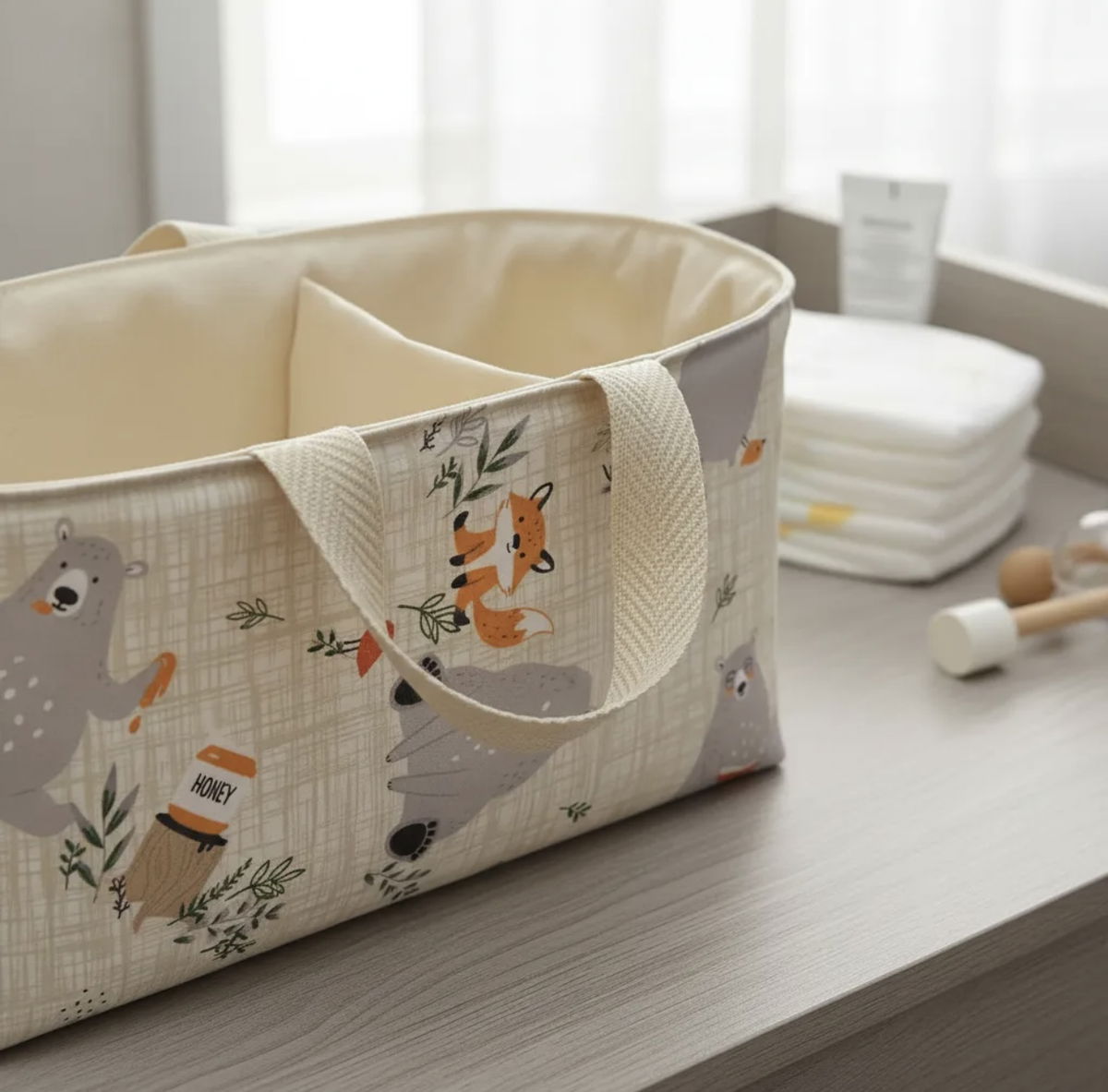 • Cesto de tela: Ideal para almacenar cremas, toallitas húmedas, talco y otros accesorios esenciales.