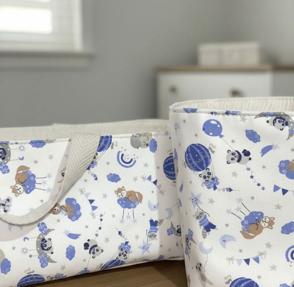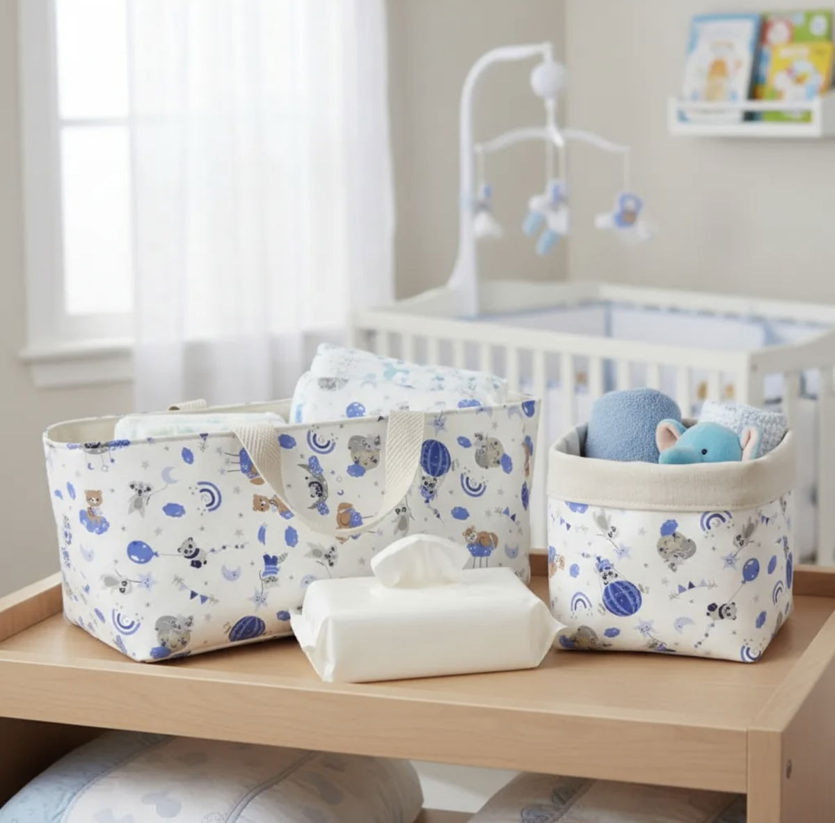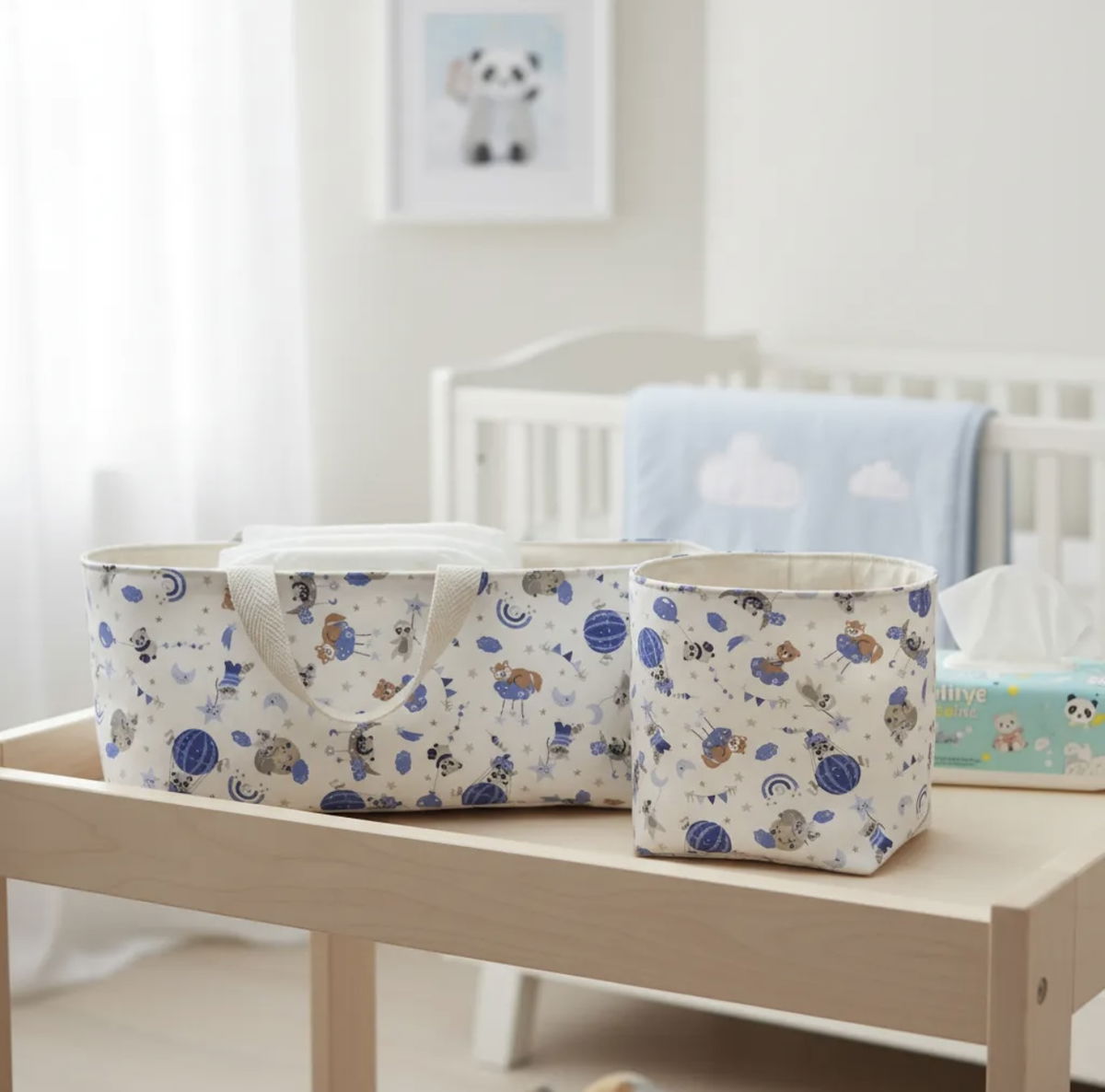 • Cesto de tela: Ideal para almacenar cremas, toallitas húmedas, talco y otros accesorios esenciales.