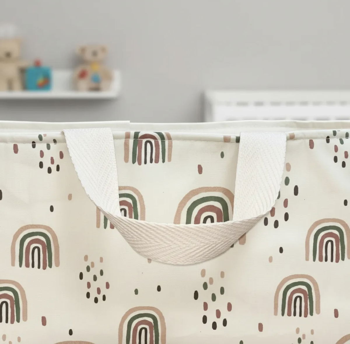 Cuenta con manijas laterales de algodón que facilitan su traslado y diseño funcional.