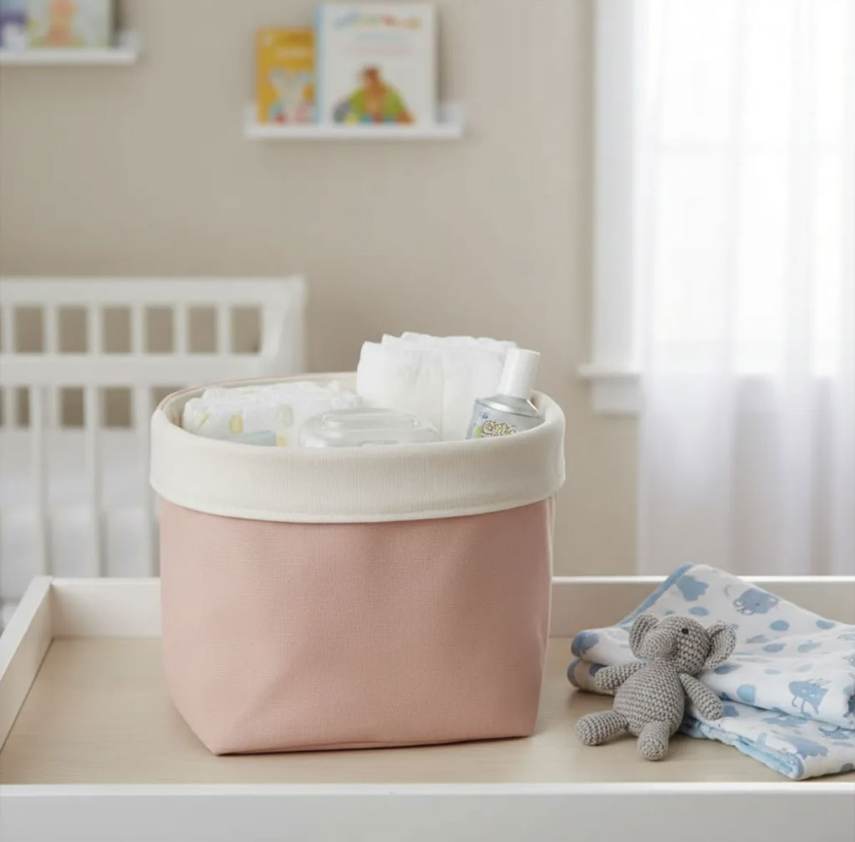 Este cesto organizador está confeccionado en tela 100% algodón con textura tipo waffle o tusor suave y resistente. Son reversibles: podés darles la vuelta y cambiar el estilo según tu gusto o ambiente.