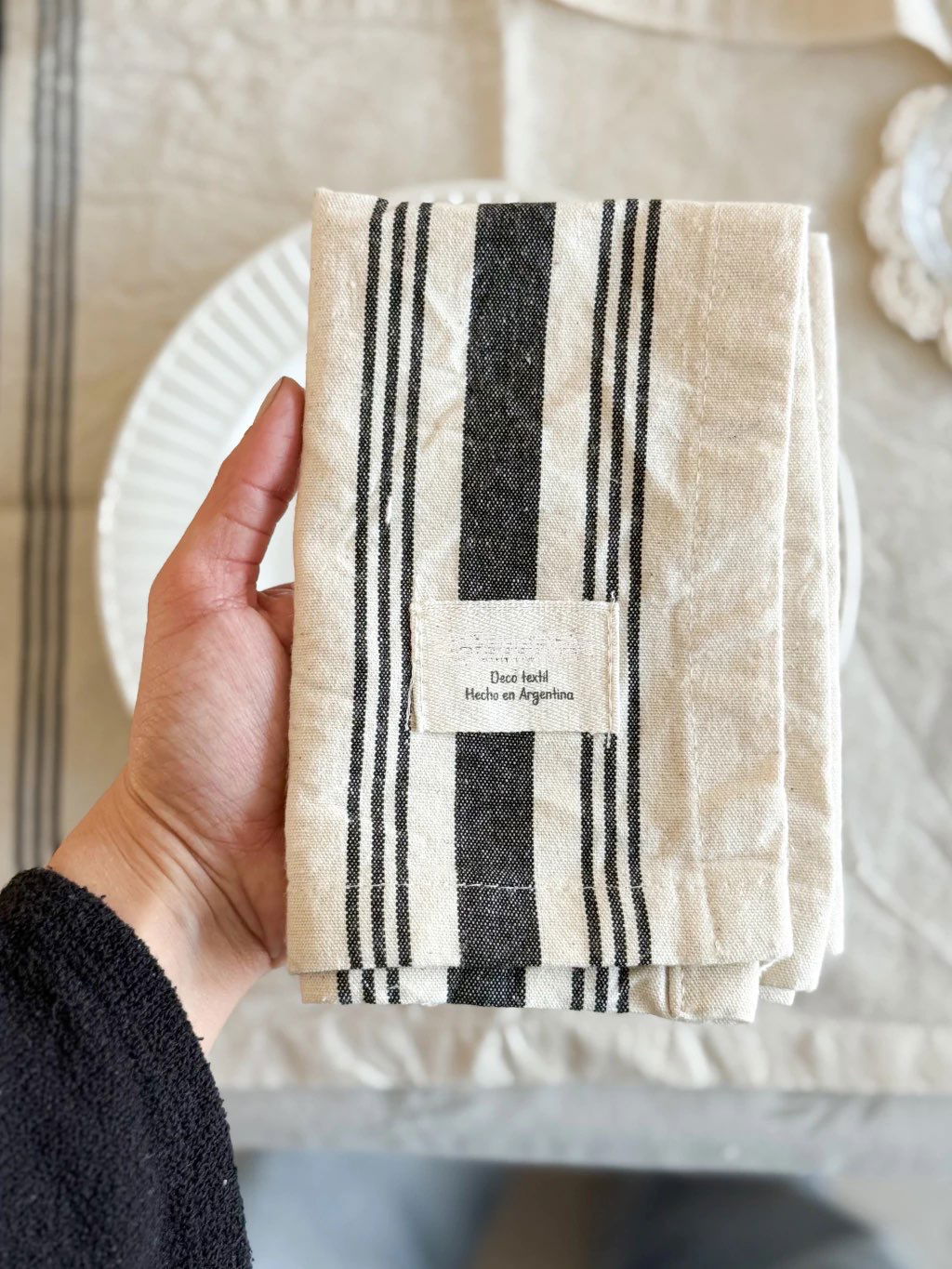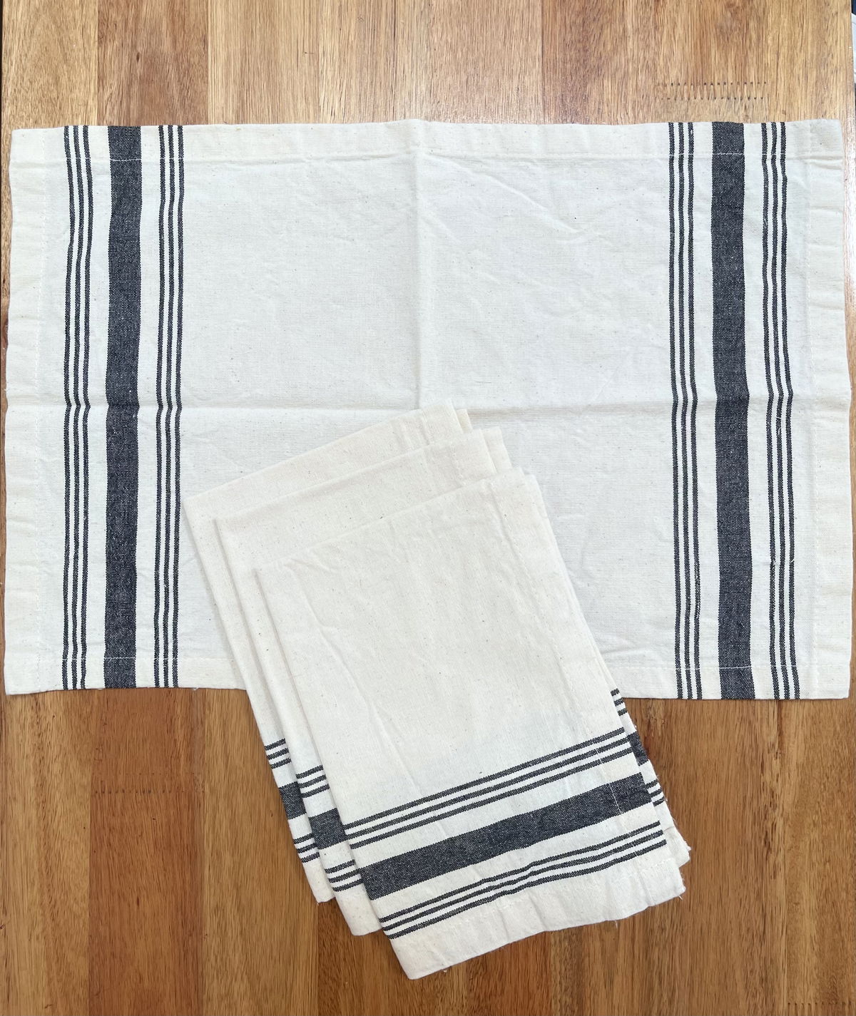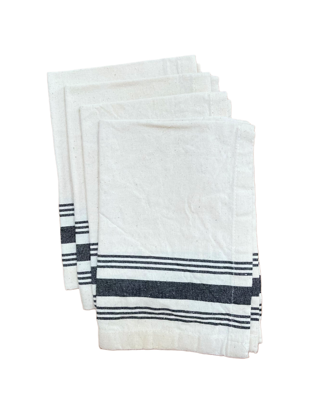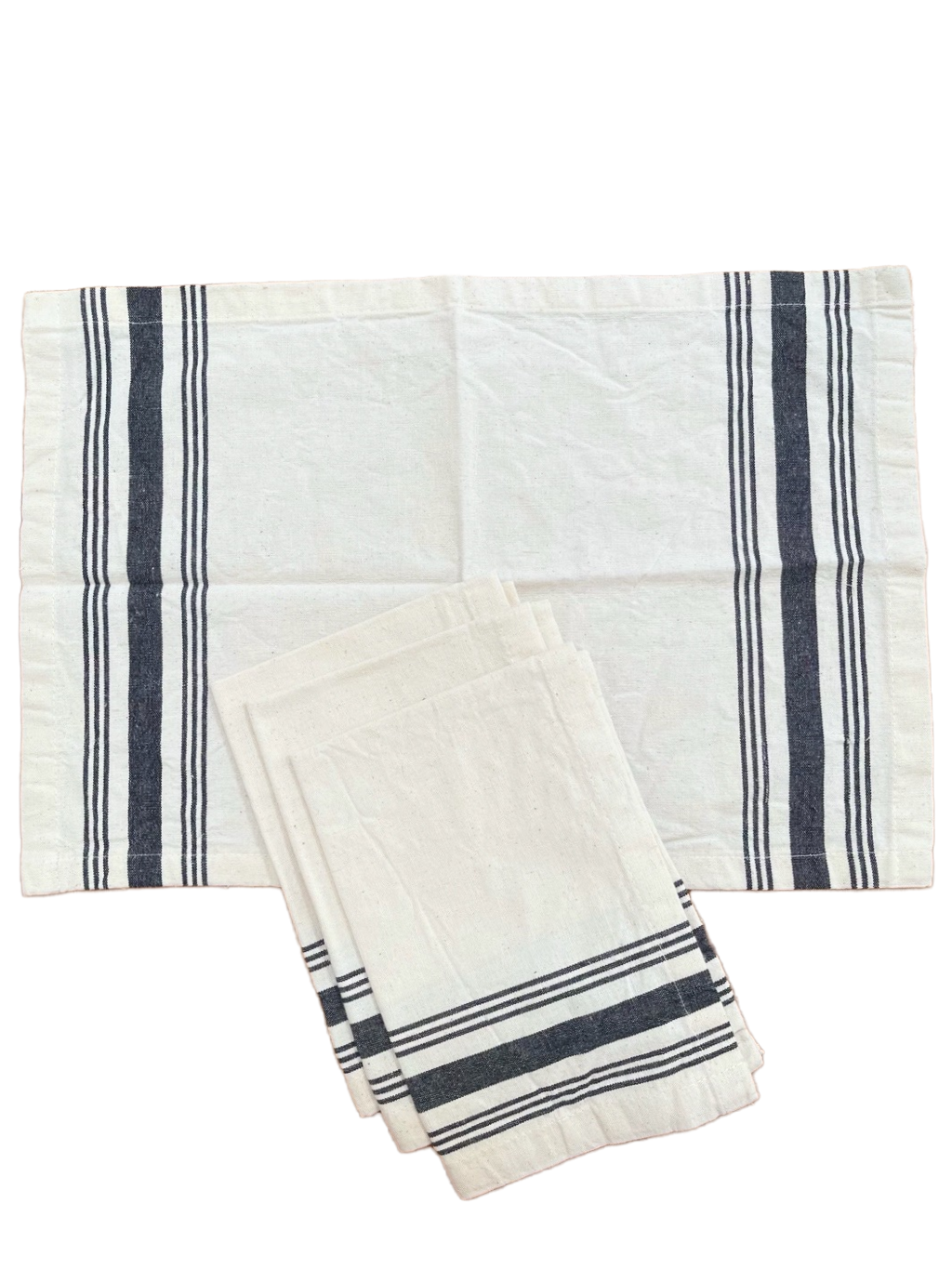 Pack de 4 individuales confeccionados en algodón natural con delicadas franjas en color negro que aportan un estilo clásico y atemporal.