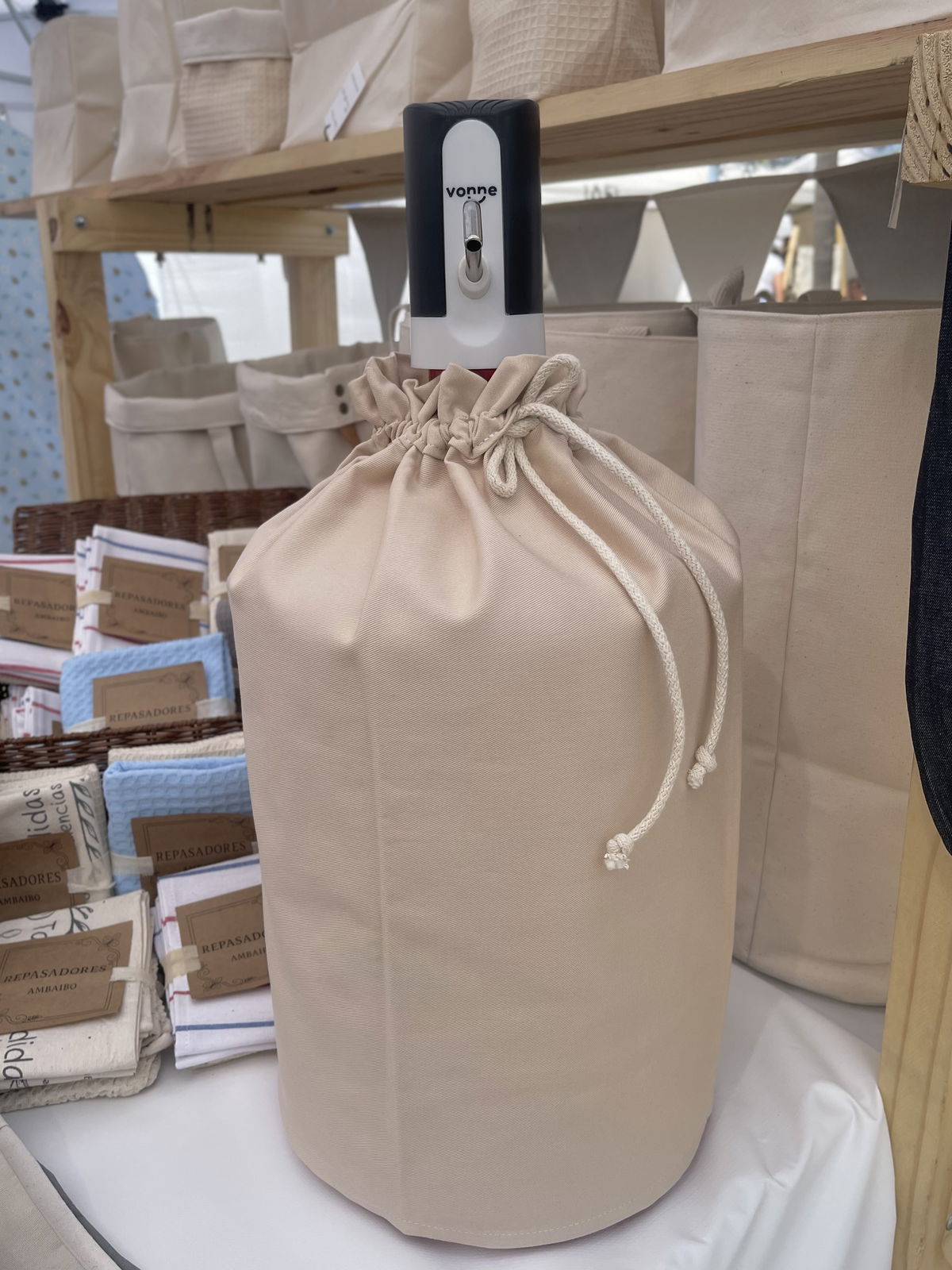 Su cierre ajustable con cordón permite una colocación sencilla y un acabado prolijo. Ideal para quienes buscan mantener su dispenser ordenado y con un toque natural.