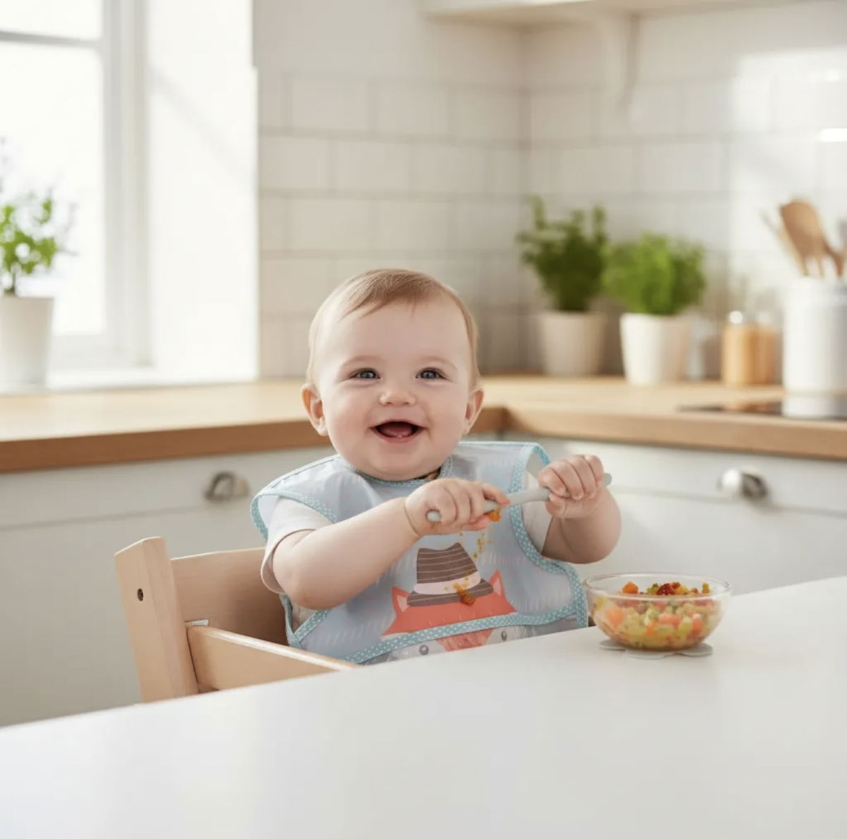 Protegé la ropa de tu bebé durante las comidas con nuestro babero impermeable, ideal para el uso diario.