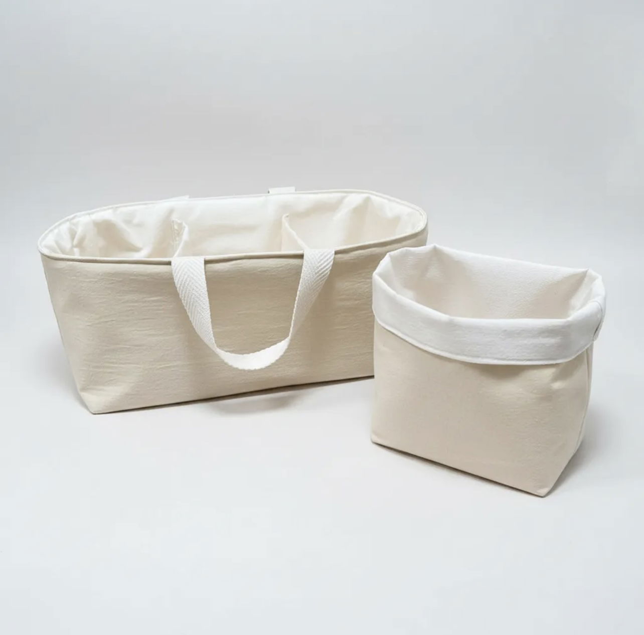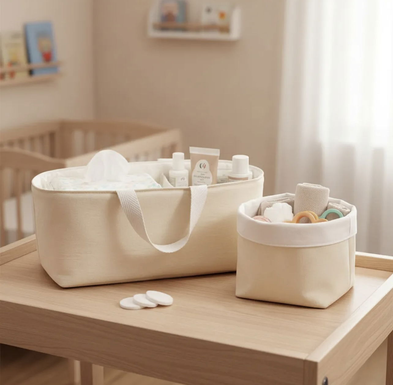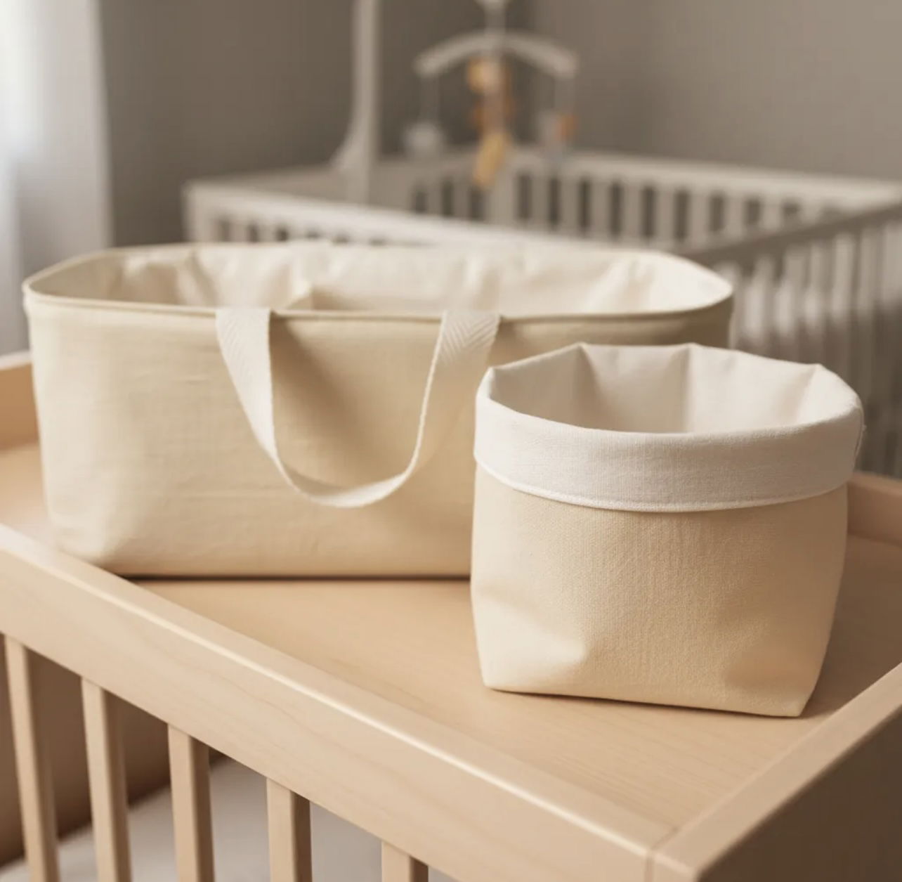• Cesto de tela: Ideal para almacenar cremas, toallitas húmedas, talco y otros accesorios esenciales.
