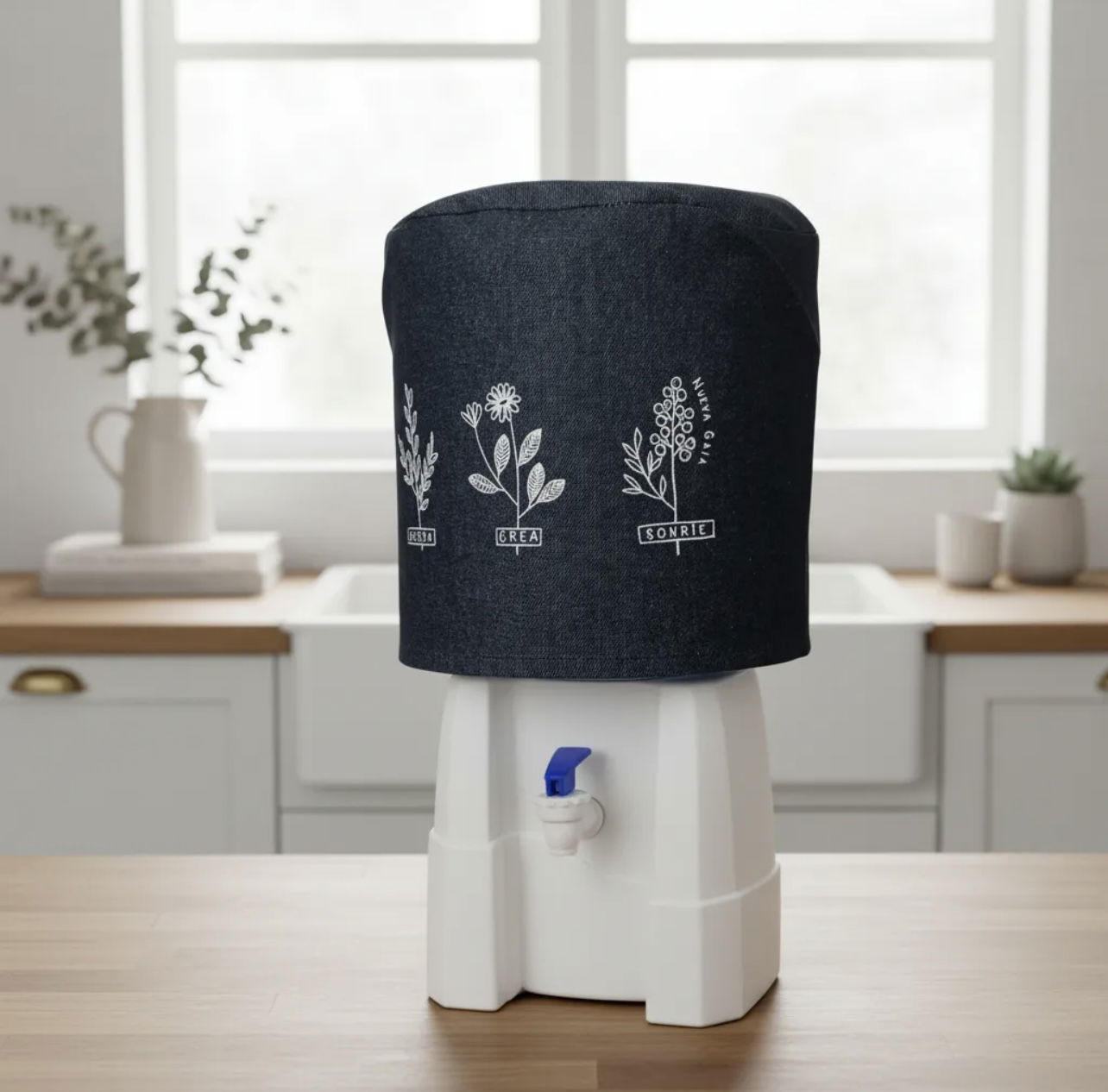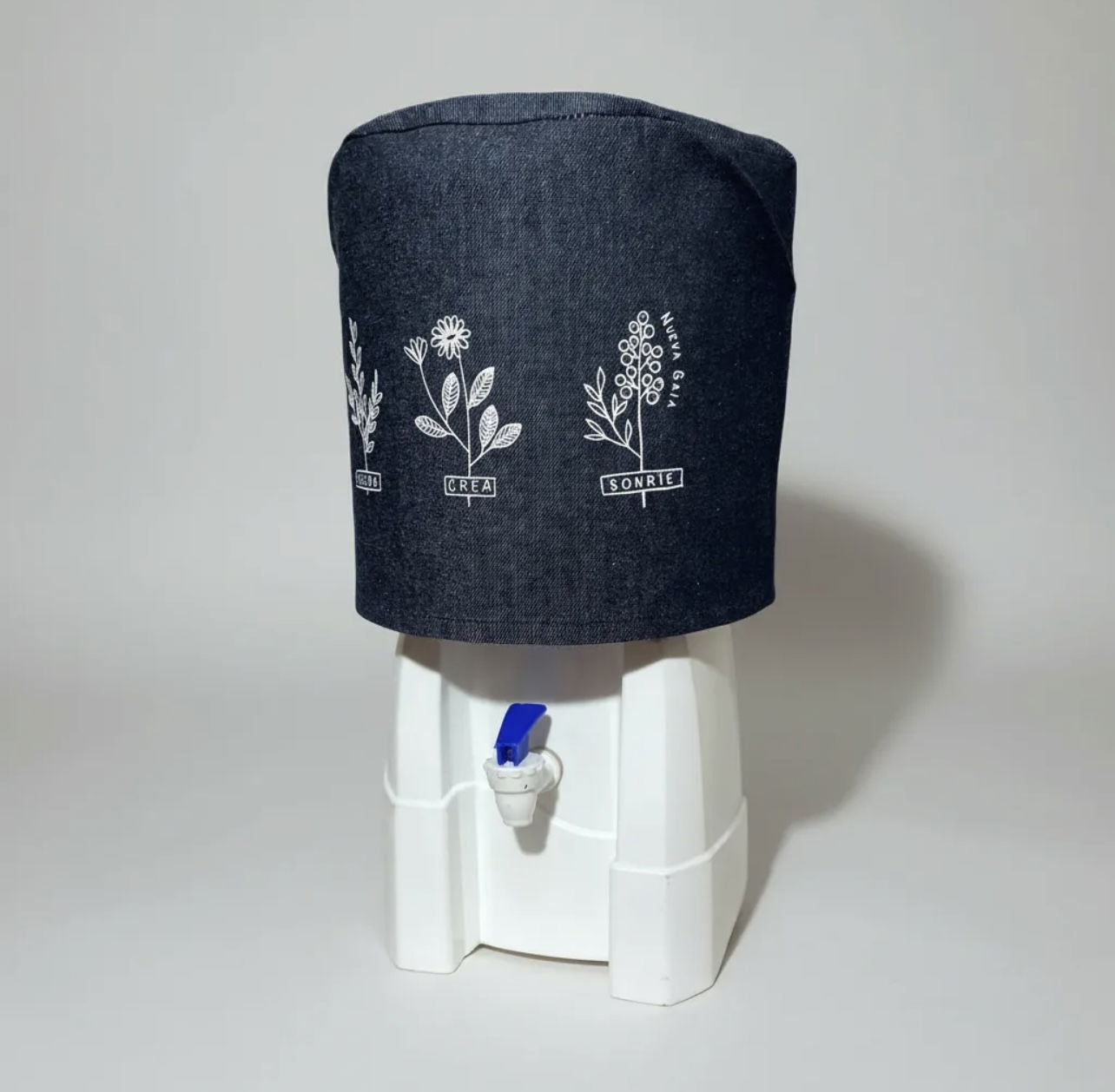 Diseñada para bidones de 12 litros, esta funda aporta calidez y estilo a los espacios del hogar. Confeccionada en tela de jean con estampa, mantiene el bidón cubierto de forma prolija y decorativa, sumando un detalle simple y encantador a tu cocina o comedor.
