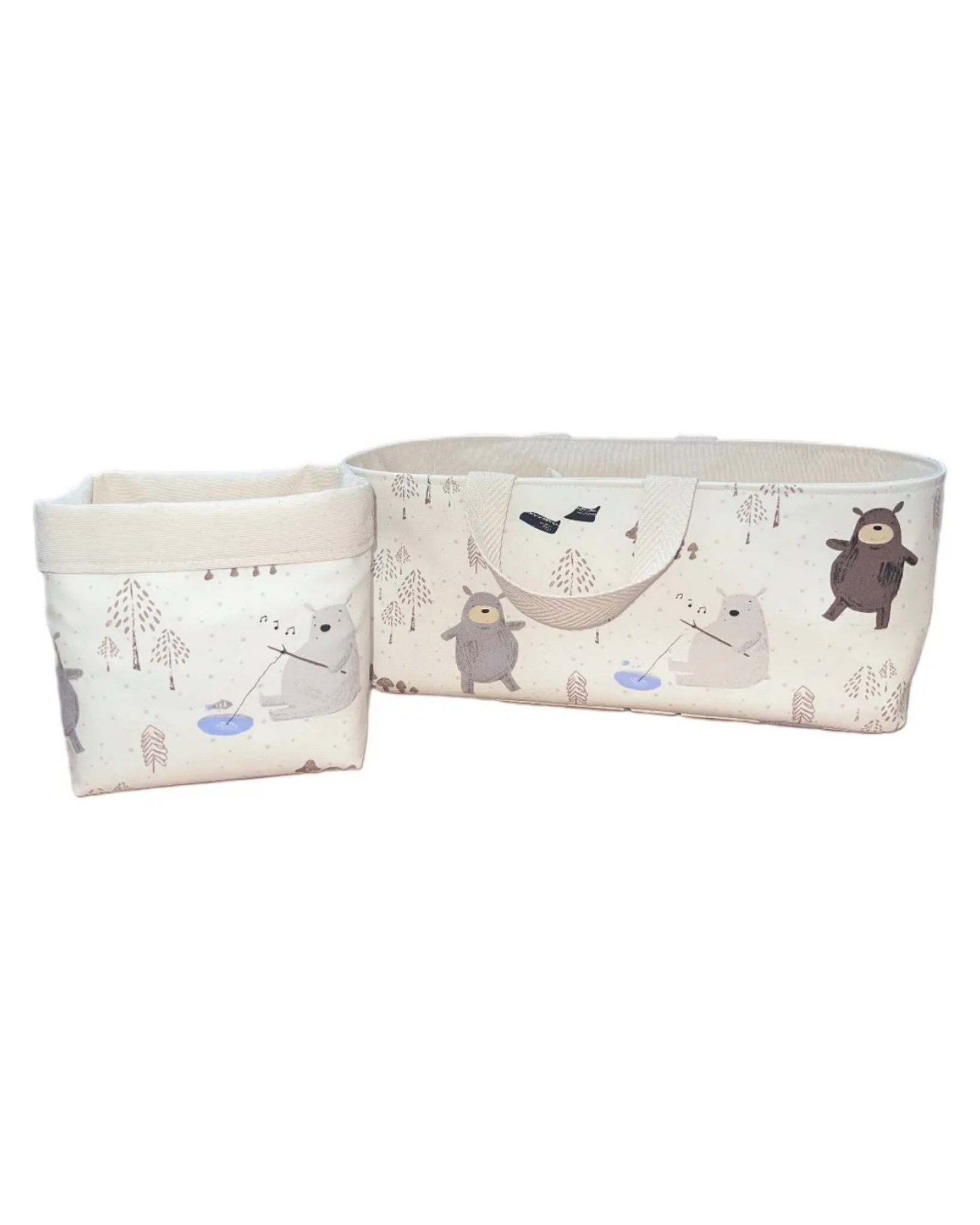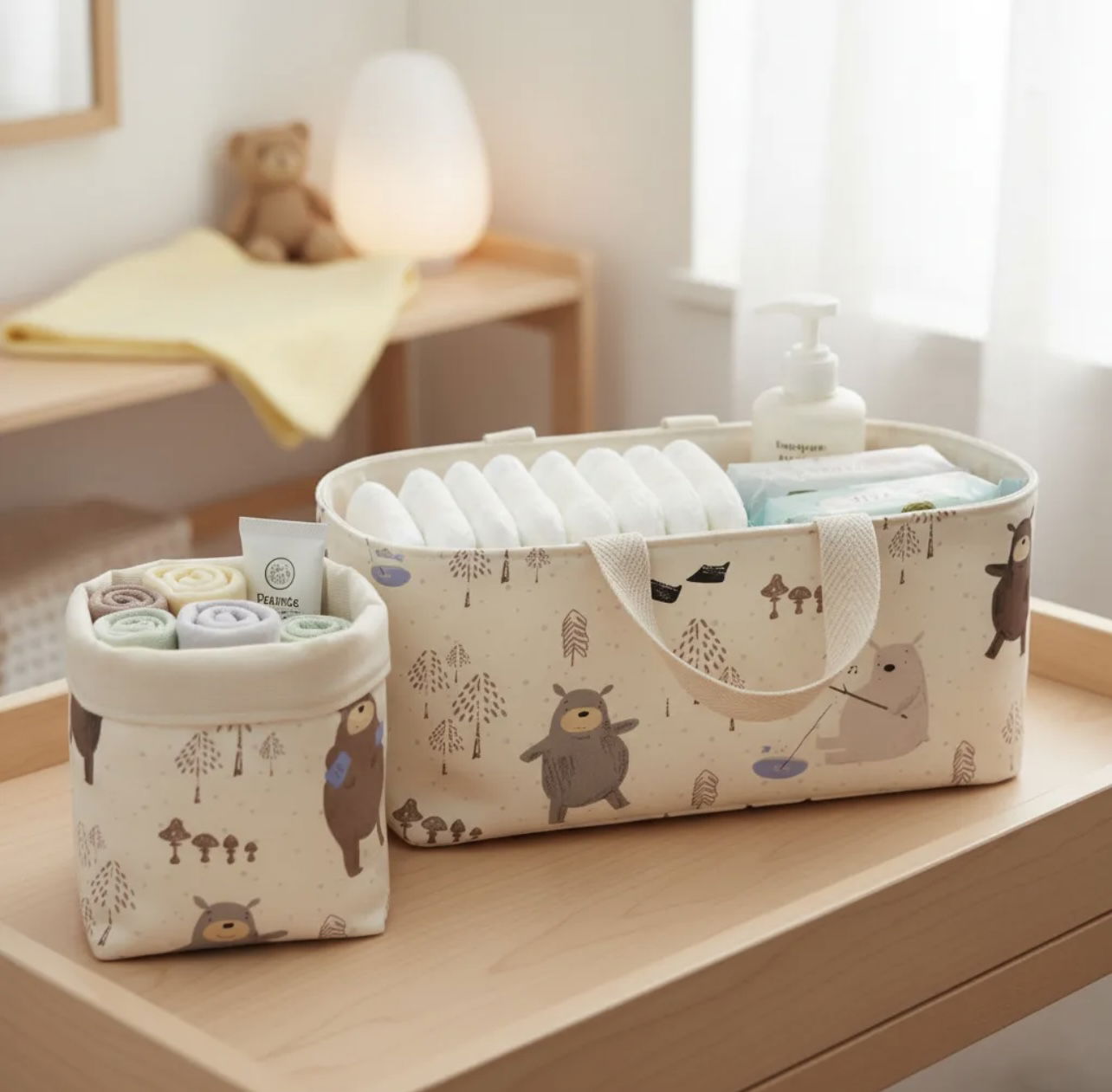 • Cesto de tela: Ideal para almacenar cremas, toallitas húmedas, talco y otros accesorios esenciales.