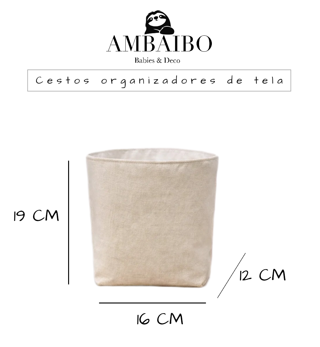 - Cesto de tela: Versátil y funcional, ideal para guardar toallitas, cremas o pequeños objetos.