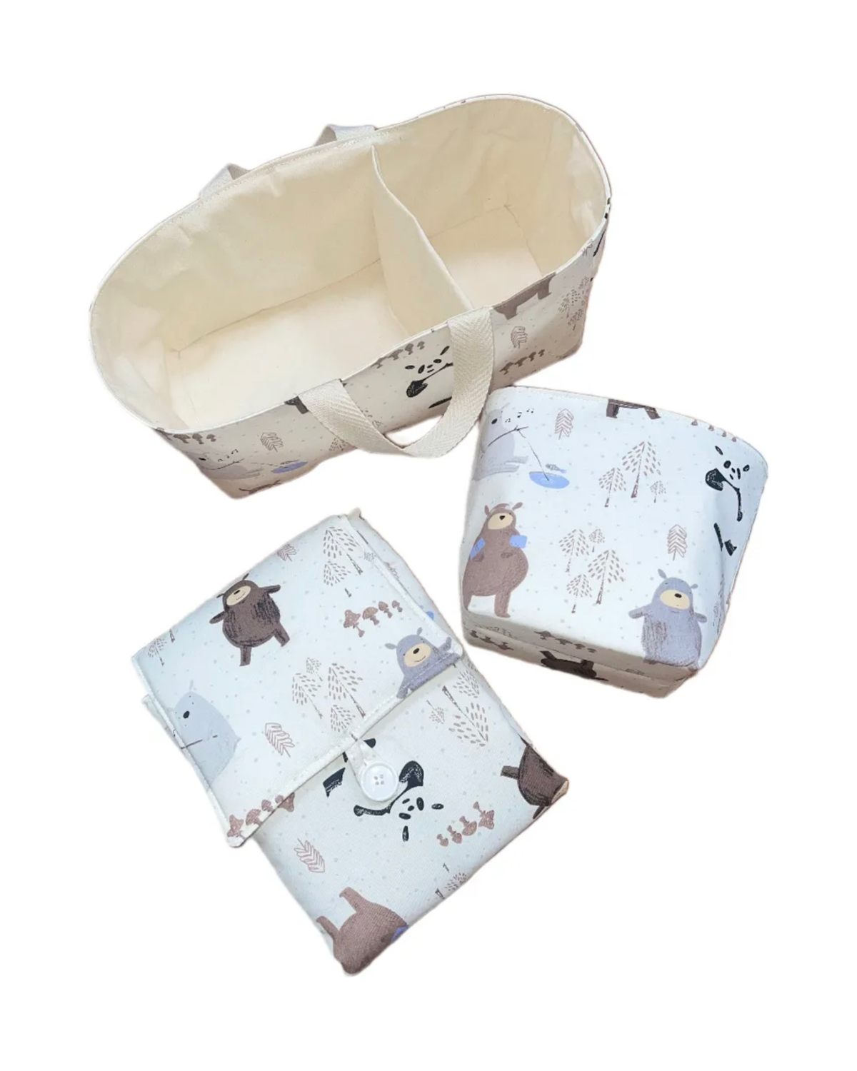 El regalo ideal para un recién nacido. Este set incluye tres productos esenciales para la organización y comodidad del bebé: