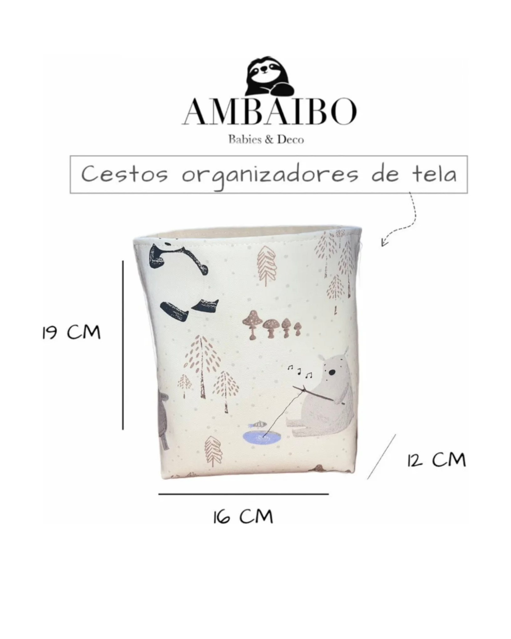 - Cesto de tela: Versátil y funcional, ideal para guardar toallitas, cremas o pequeños objetos.