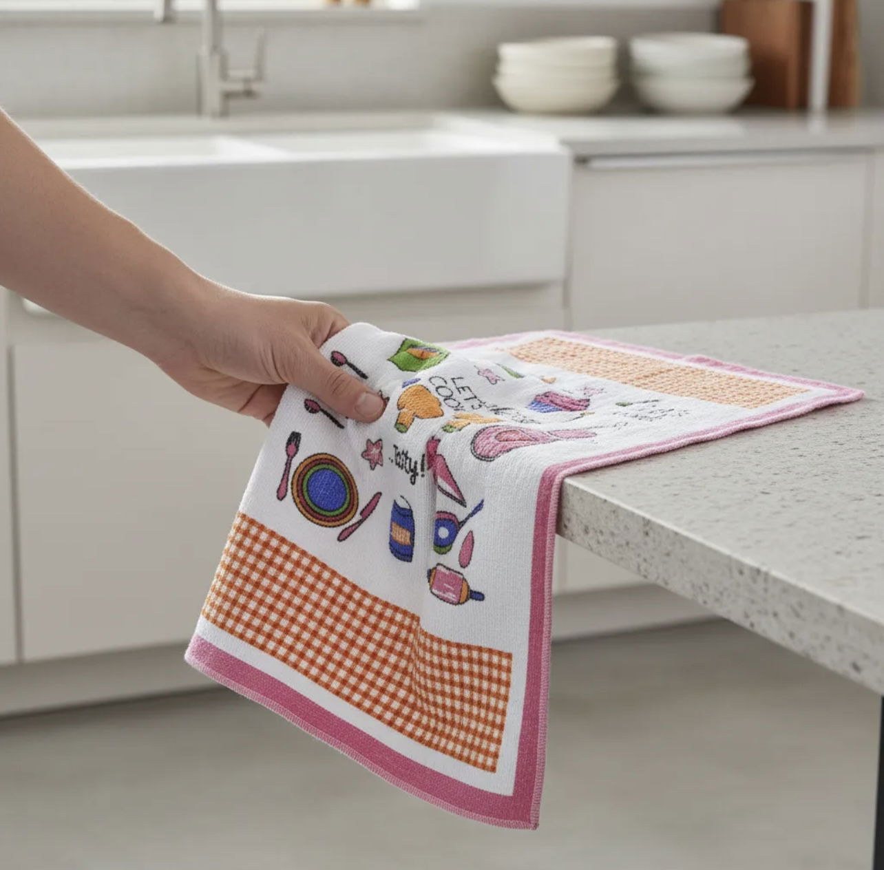 Son suaves al tacto, absorbentes y resistentes al uso diario, ideales para acompañar las tareas de cocina con estilo y practicidad.