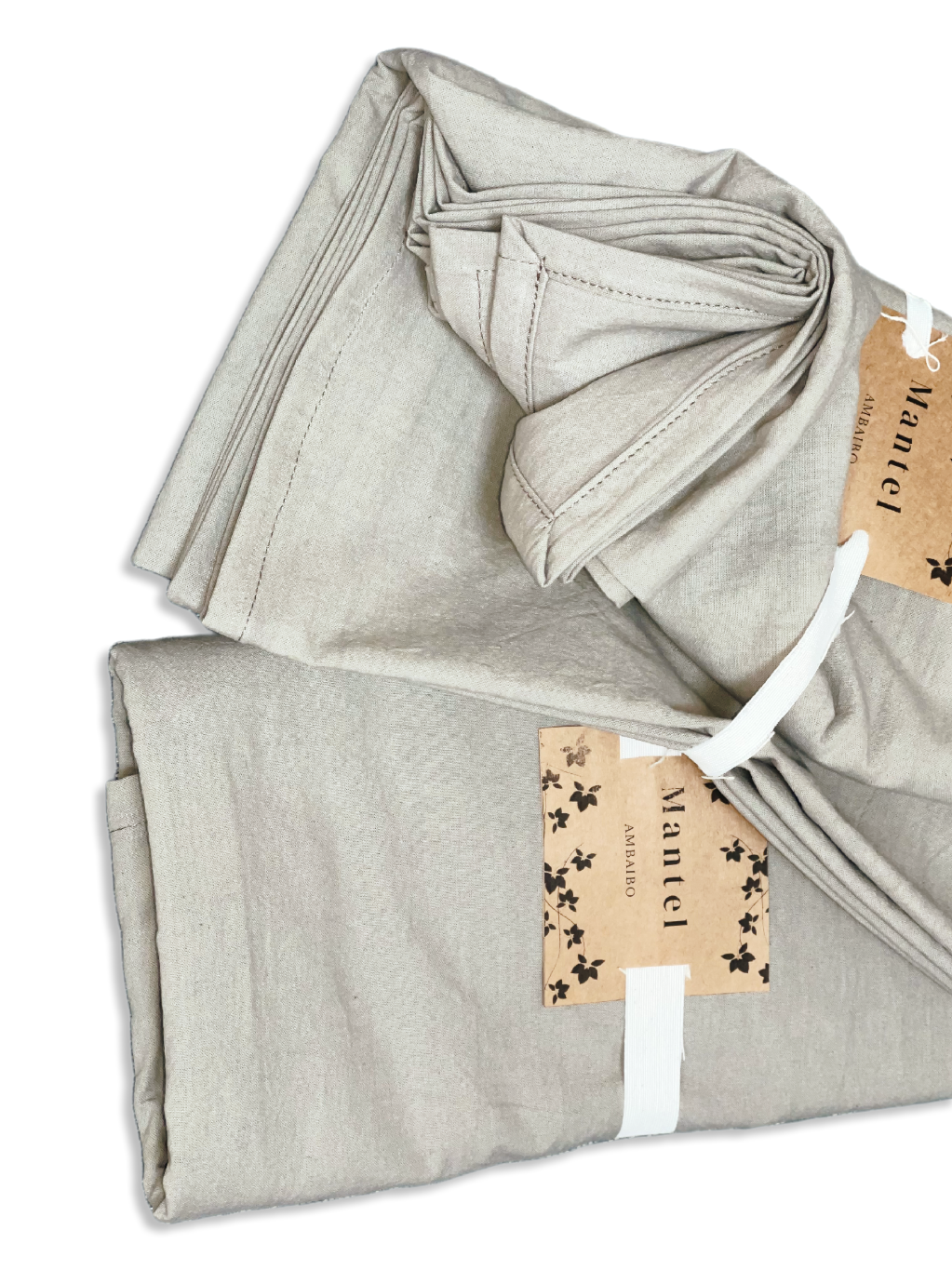 Confeccionado en tusor de algodón, un tejido suave, resistente y con cuerpo que aporta una textura natural y elegante.