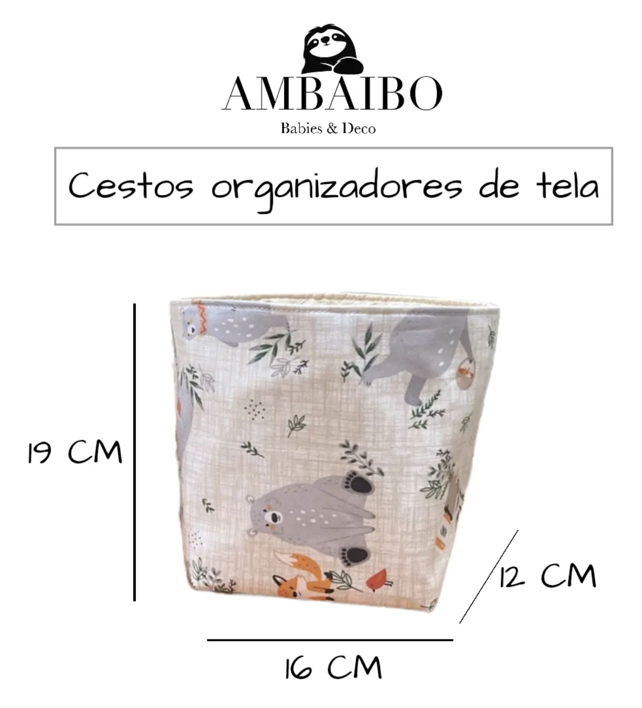 - Cesto de tela: Versátil y funcional, ideal para guardar toallitas, cremas o pequeños objetos.