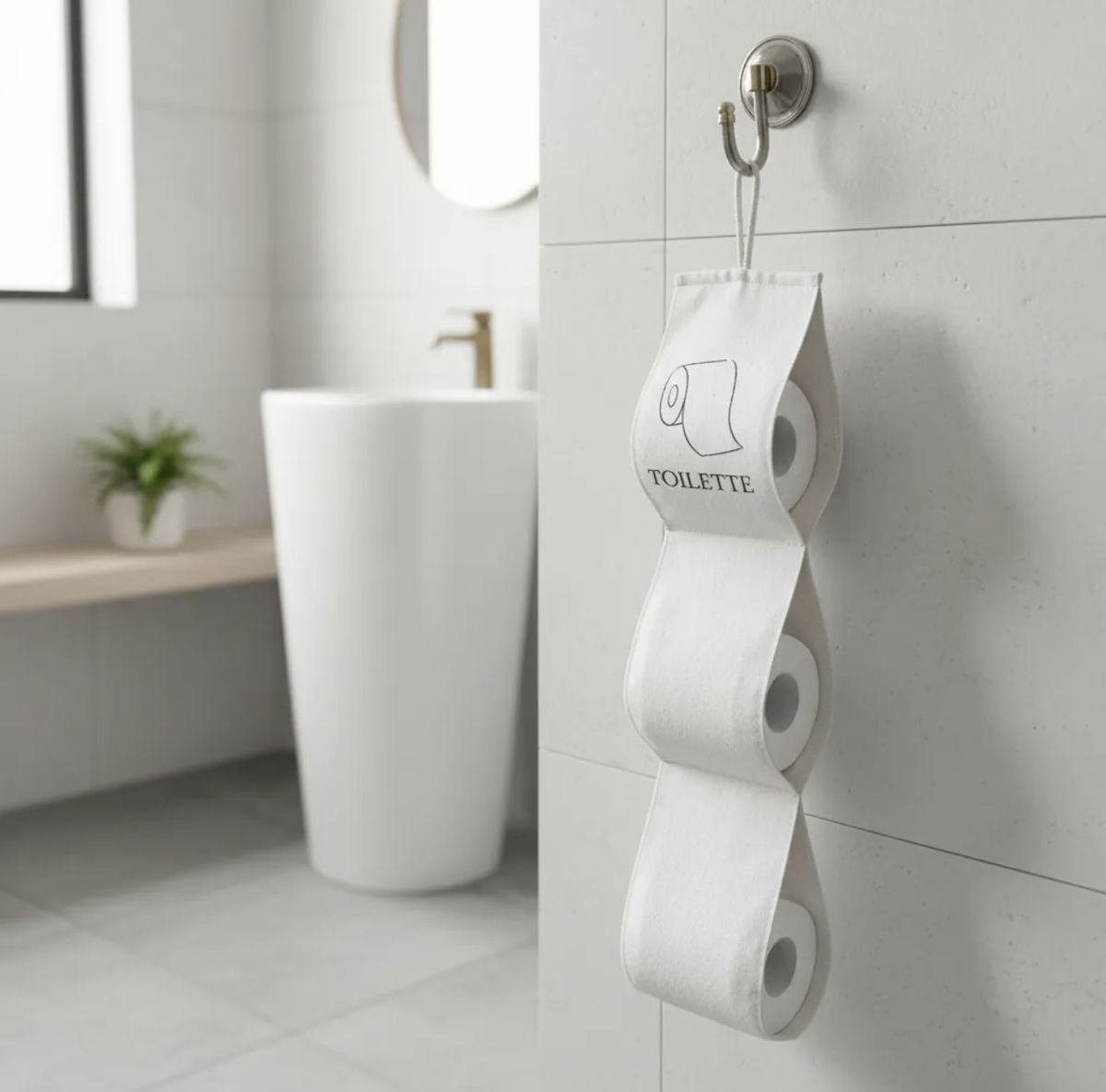 Organizador colgante con 3 compartimentos, ideal para tener el papel higiénico siempre a mano. Confeccionado en lona/jean resistente. Incluye una tirita para que lo puedas colgar. Su diseño práctico y funcional lo convierte en un aliado perfecto para mantener el orden en tu hogar.