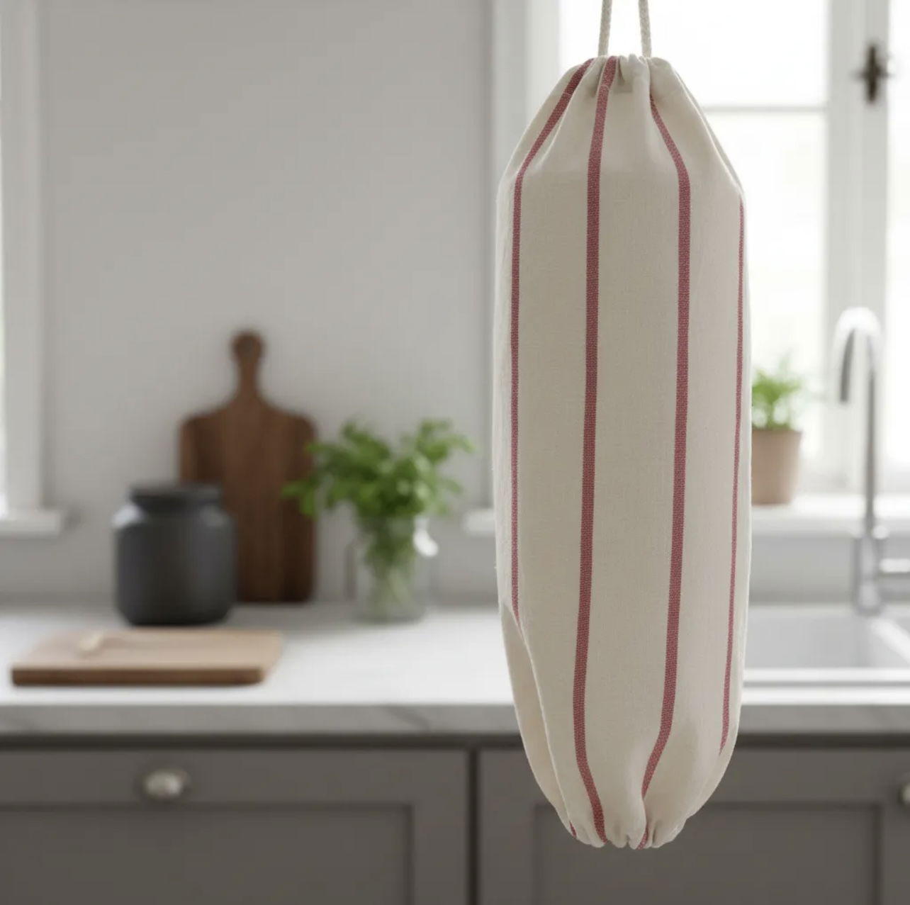 Organizá tu cocina con estilo. Nuestros guarda bolsas están confeccionados en tela de Tusor, con práctica apertura superior e inferior para guardar y sacar las bolsas fácilmente, siempre a tu alcance!
