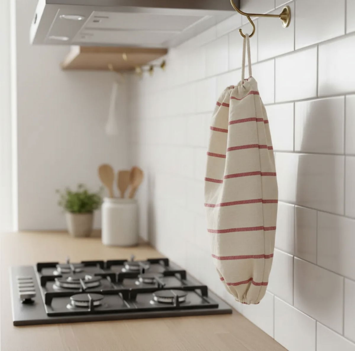 Organizá tu cocina con estilo. Nuestros guarda bolsas están confeccionados en tela de Tusor, con práctica apertura superior e inferior para guardar y sacar las bolsas fácilmente, siempre a tu alcance!