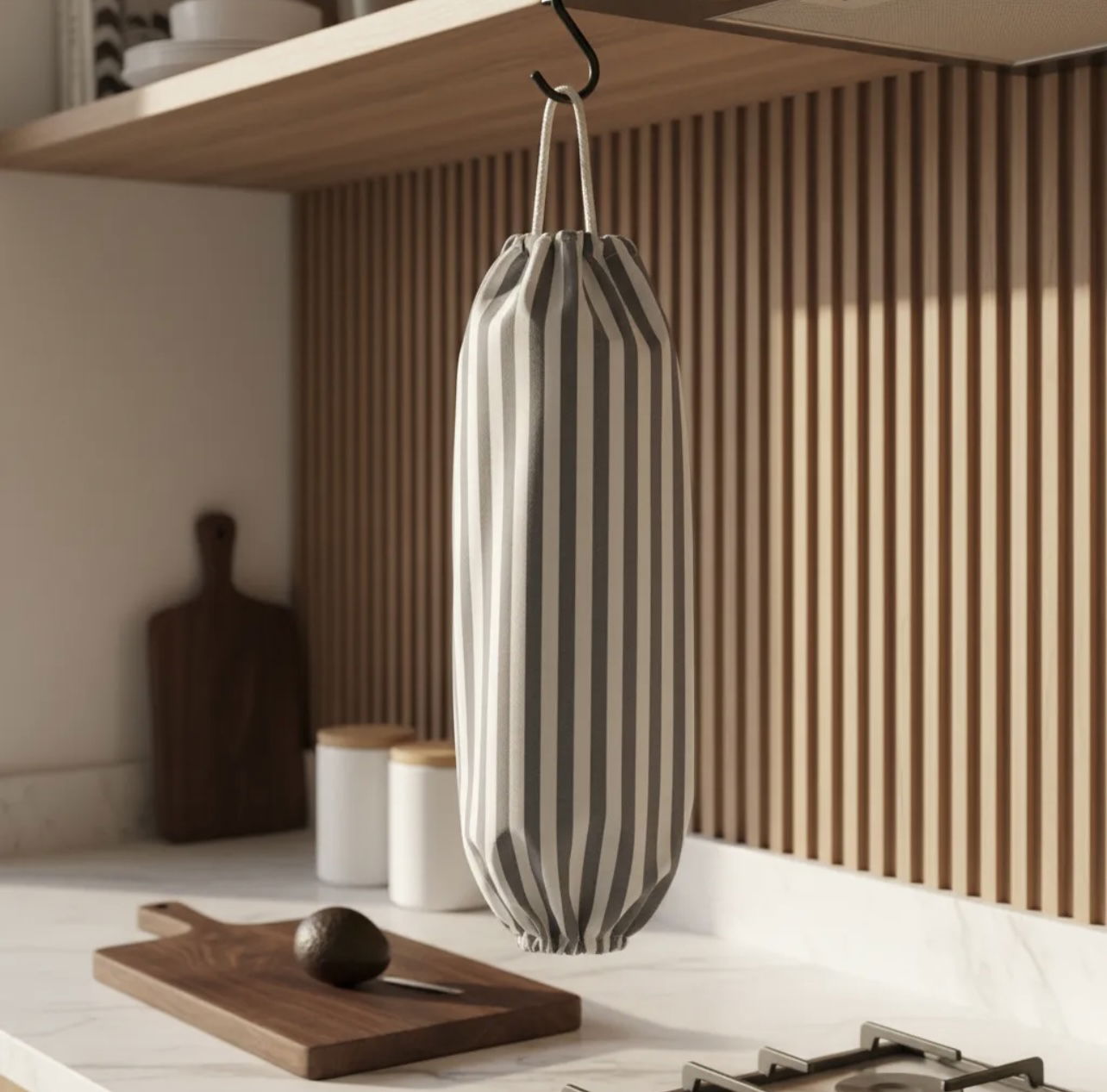 Organizá tu cocina con estilo. Nuestros guarda bolsas están confeccionados en tela de Tusor, con práctica apertura superior e inferior para guardar y sacar las bolsas fácilmente, siempre a tu alcance!
