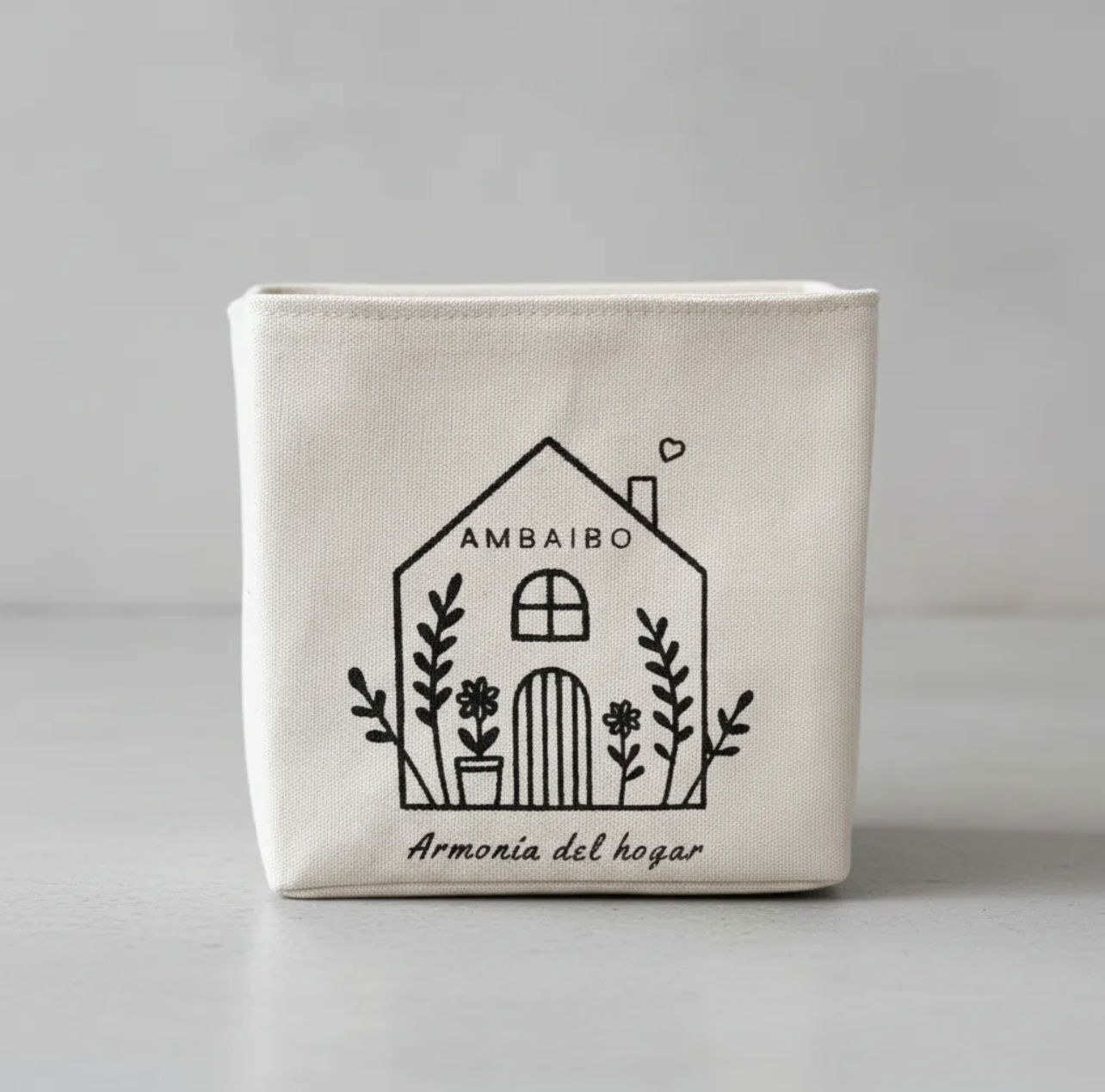 Organizadores de lona de algodón, resistentes y estampados en serigrafía.