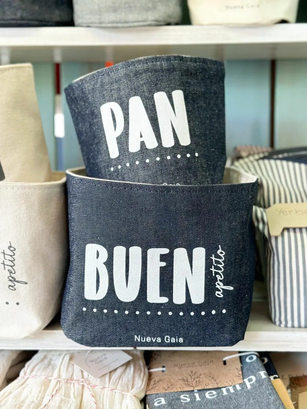 Organizadores de lona de algodón, resistentes y estampados en serigrafía.