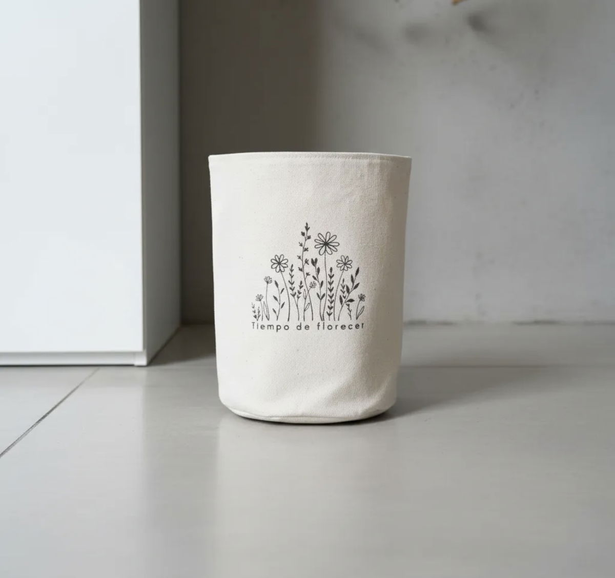 Organizador tipo cesto decorativo, confeccionado en lona resistente, ideal para mantener tus espacios ordenados y funcionales. Su diseño práctico y versátil lo hace perfecto para usar en dormitorio, escritorio, oficina o cualquier rincón del hogar.